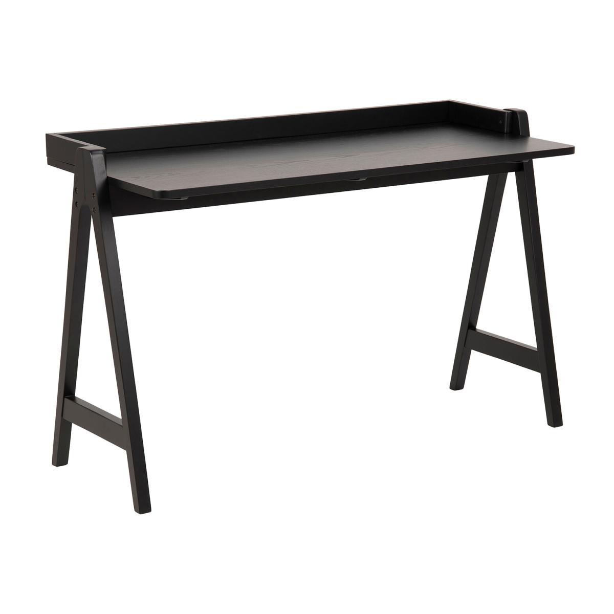 Create a stylish workspace with this Miso Office Desk. With a top crafted from matt black lacquered oak veneer and a base of matt black lacquered rubberwood, this desk exudes sleek sophistication and charm. A perfect blend of functionality and modern design, it boasts exceptional craftsmanship and raised edges to keep things in place.