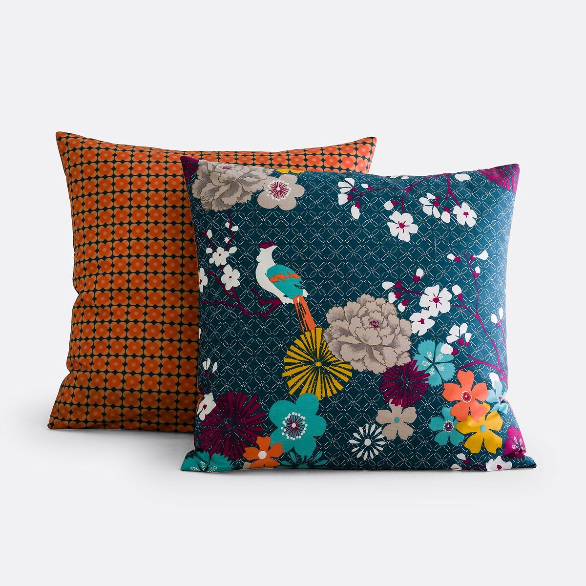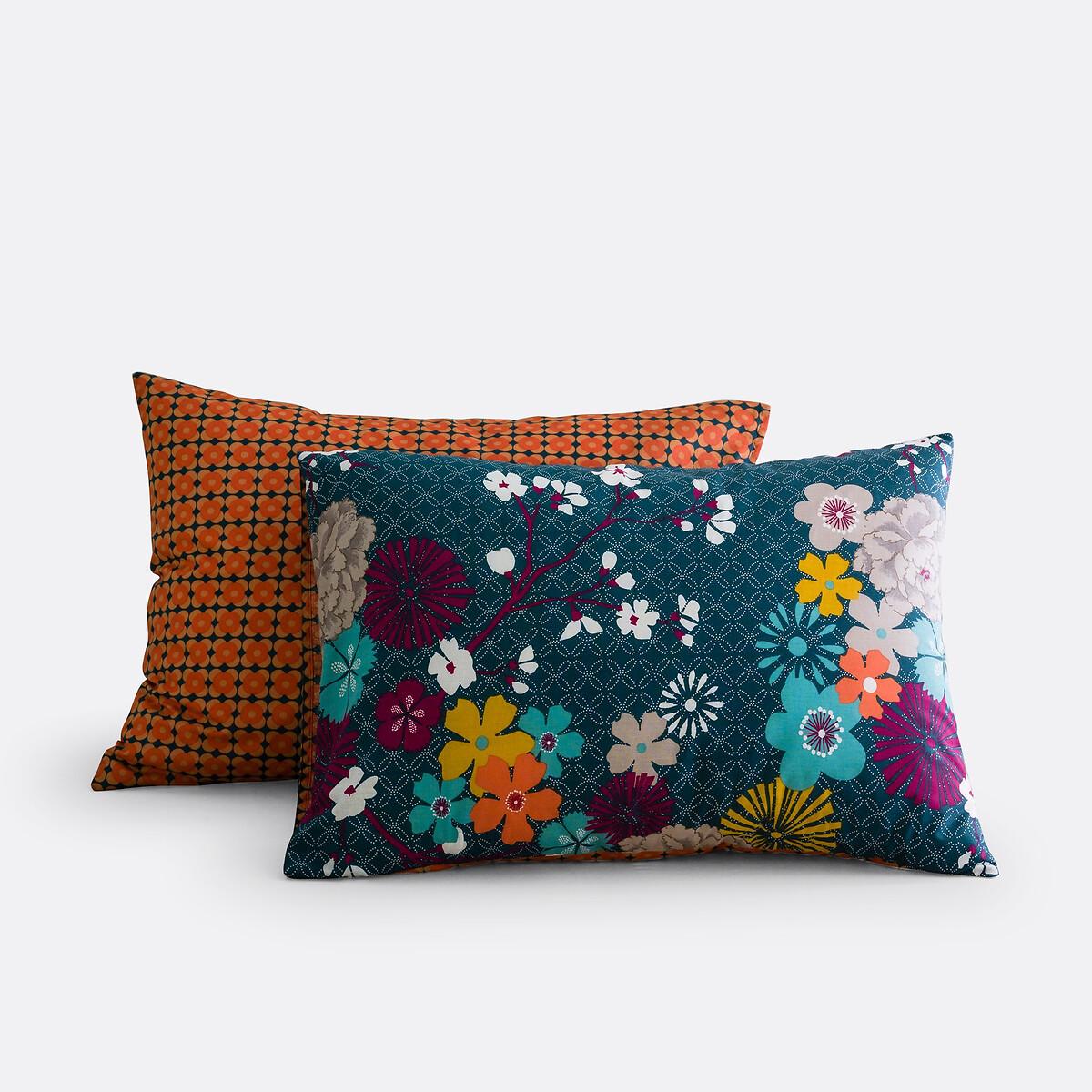 This pillowcase incorporates themes of the Far East in a beautiful combination of oriental motifs and bright colours. The Miss China square or rectangular pillowcase has a flower print on the front and small motif print on the back. Small pattern print on the bolster case. A stunning combo of Japanese motifs and shimmering colours. Cotton is part of our daily lives. We love it for its suppleness and softness. Easy Care, it is ideal for the beds of young and old alike!Product Details • 100% cotton • • Reversible, floral print on the front, small printed motifs on the back. Care Advice • Machine washable at 60°C • By washing your laundry at 40°C instead of 60°C, you limit energy consumption. Dimensions • 50 x 70cm: Rectangular pillowcase • 63 x 63cm: Square pillowcase • 85 x 185cm: Bolster case. Diameter: 42.5cm (circumference : 85cm) x Length : 185cm • OEKO-TEX® Standard 100. Standard 100 certification by OEKO-TEX® tests textile products for harmful substances via an independent, international label.