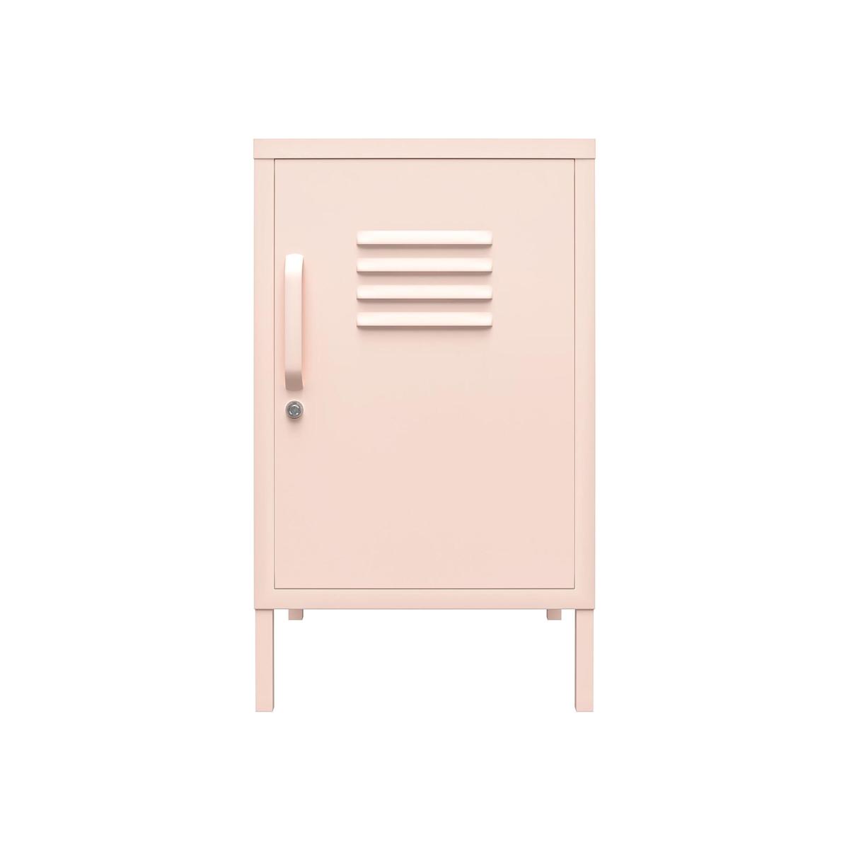 Add a fun and funky end table to your living room with the Systembuild Evolution Mission District Metal Locker End Table. Made of powder-coated metal, the black colour and locker-style design add a fun twist to your living room collection. The metal can be cleaned with a damp cloth so you can easily clean spills. The 2 shelves behind the locker-style door are perfect for organizing books, magazines, and electronics. The door features a lock so you can keep your little ones out of your things. A wall anchor kit is included to secure the End Table to the wall. The End Table ships flat to your door and requires assembly upon opening. Two adults are recommended to assemble.