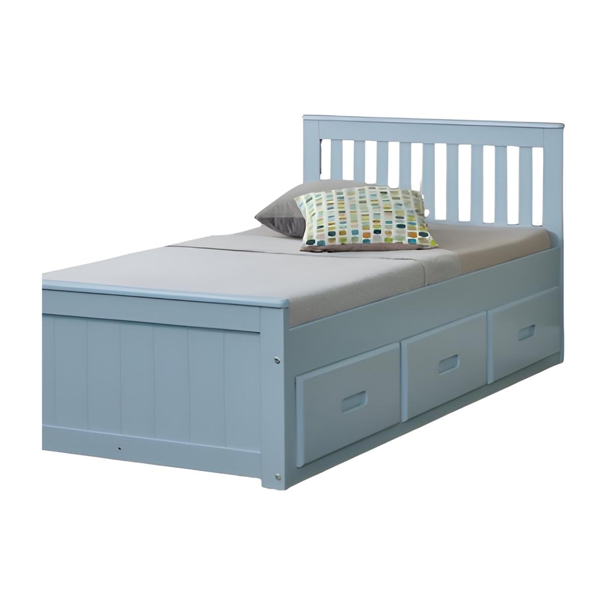 Introducing the Pink Bliss Wooden Storage Bed, designed for teenage girls. Its vibrant pink hue adds excitement and elegance to their room while offering ample storage options. Crafted with high-quality materials for durability. Meticulously crafted with ergonomic handles. Easy assembly with user-friendly instructions. Elevate your bedroom with the Pink Bliss Bed for vibrancy and organization. Introducing the Blue Horizon: Storage Bed Reimagined. Captivating blue finish meets spacious drawers for clutter-free bliss. Built to last with unmatched quality. Easy assembly for stress-free setup. Order yours & embrace timeless style