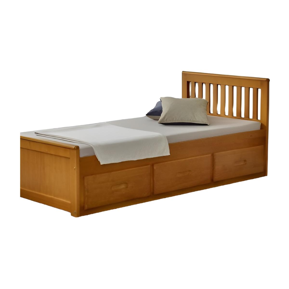 Introducing the Pink Bliss Wooden Storage Bed, designed for teenage girls. Its vibrant pink hue adds excitement and elegance to their room while offering ample storage options. Crafted with high-quality materials for durability. Meticulously crafted with ergonomic handles. Easy assembly with user-friendly instructions. Elevate your bedroom with the Pink Bliss Bed for vibrancy and organization. Craving a cozy bedroom haven? The Honey Haven bed in a warm honey hue is your answer. This charming design features hidden drawers for effortless organization, keeping your space clutter-free. Crafted with quality materials for lasting durability, it promises years of restful nights. Unwind in style and embrace the comfort of the Honey Haven.