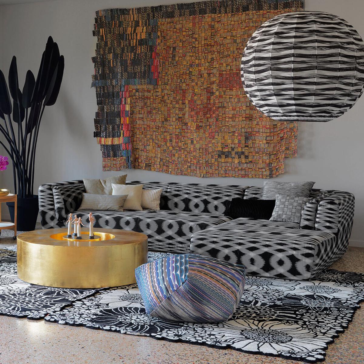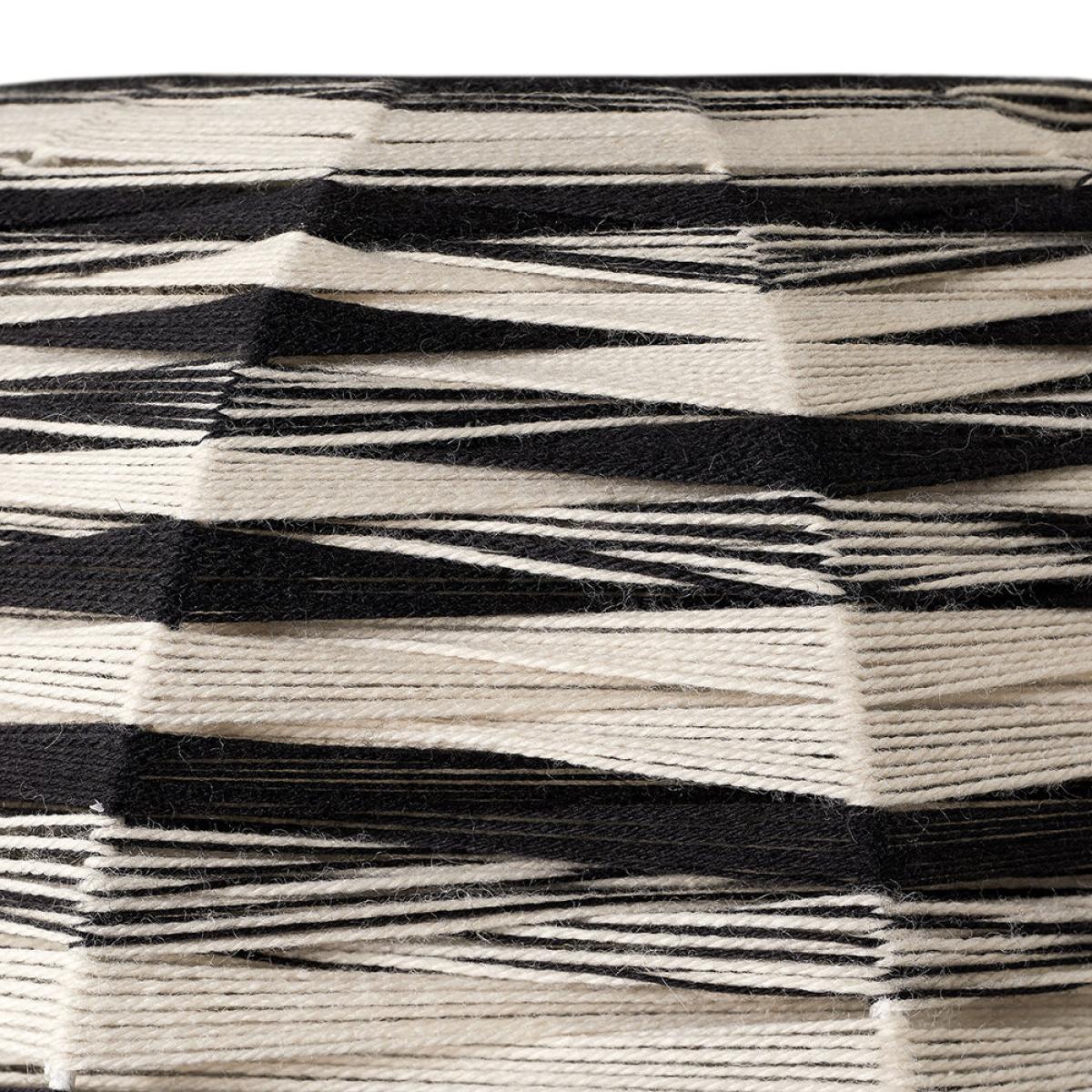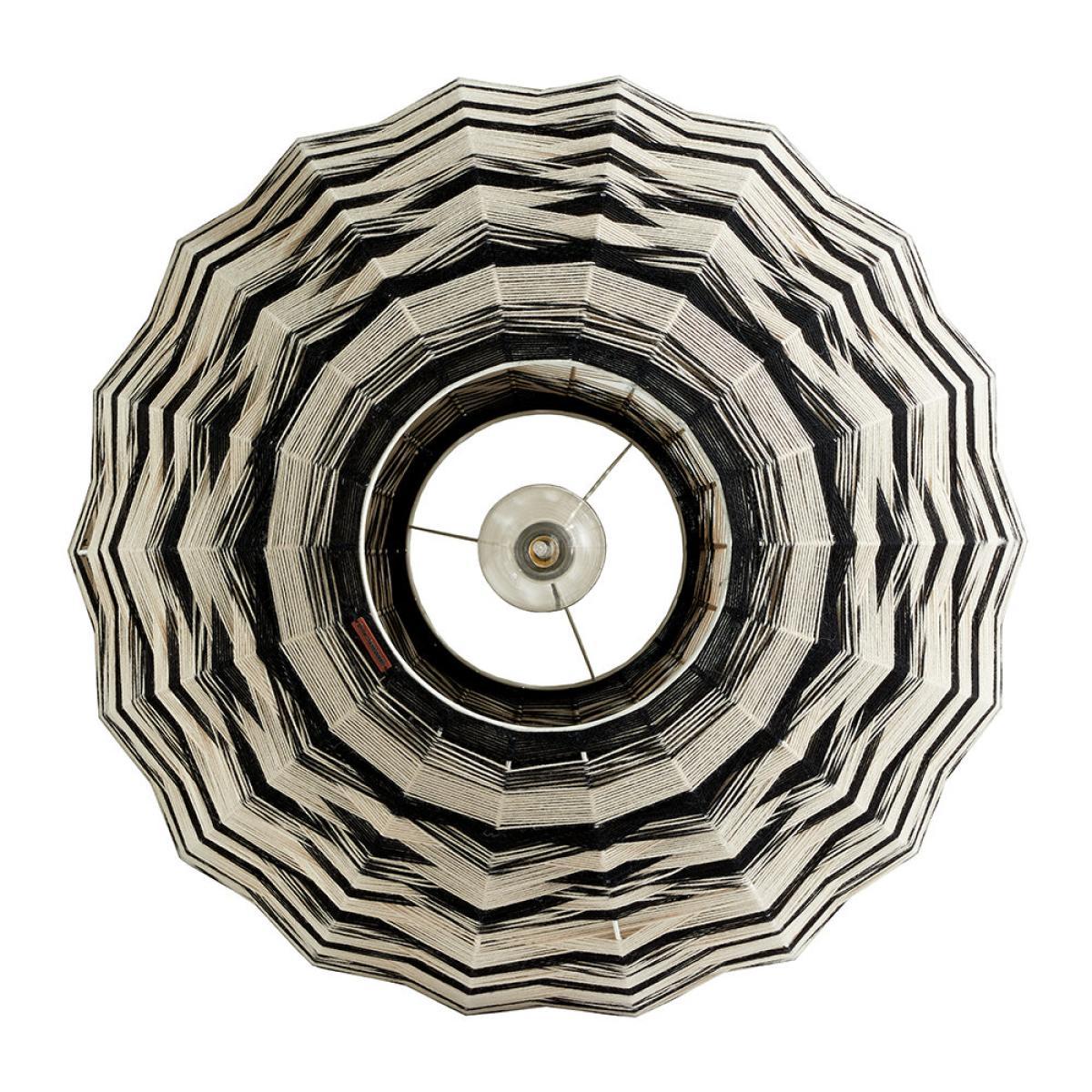Bring fashion-forward design into any space with this Thea Kuta lampshade from Missoni Home. Featuring a strong metal spherical structure, it is covered with a plethora of handwoven threads casting a beautiful geometric pattern when light shines through. Key features: * Material: steel, aluminium, wool * Dimensions: Ø90cm * Spherical shape * Covered with hand-woven wool threads * In black and white tones * Casting a geometric pattern when light shines through * Made in Italy