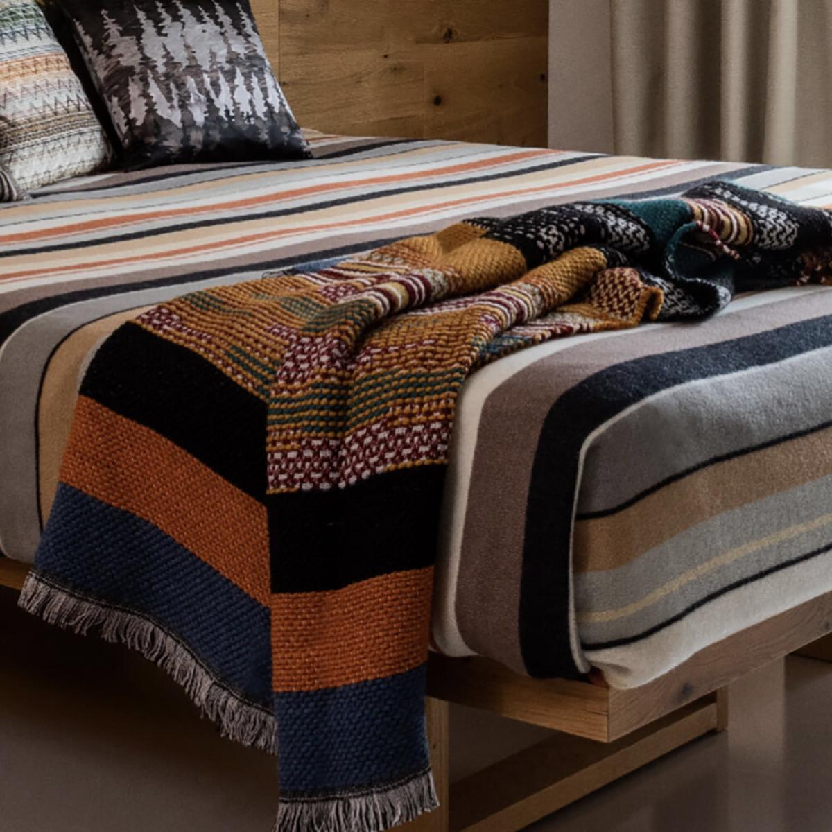 I love the Missoni Home Yailin Throw for its vibrant, modern pattern and luxurious texture, making it a versatile accent piece. It works beautifully in contemporary or eclectic interiors, adding colour and visual interest to a neutral sofa or bed. Practical styling tips include draping it casually over a armchair or layering it at the foot of a bed to create a cosy, inviting look. Its bold stripes and subdued colour palette make it adaptable, so you can mix and match with other textiles or patterns for a more personalised feel. It’s perfect for adding a pop of colour without overwhelming the existing decor.
