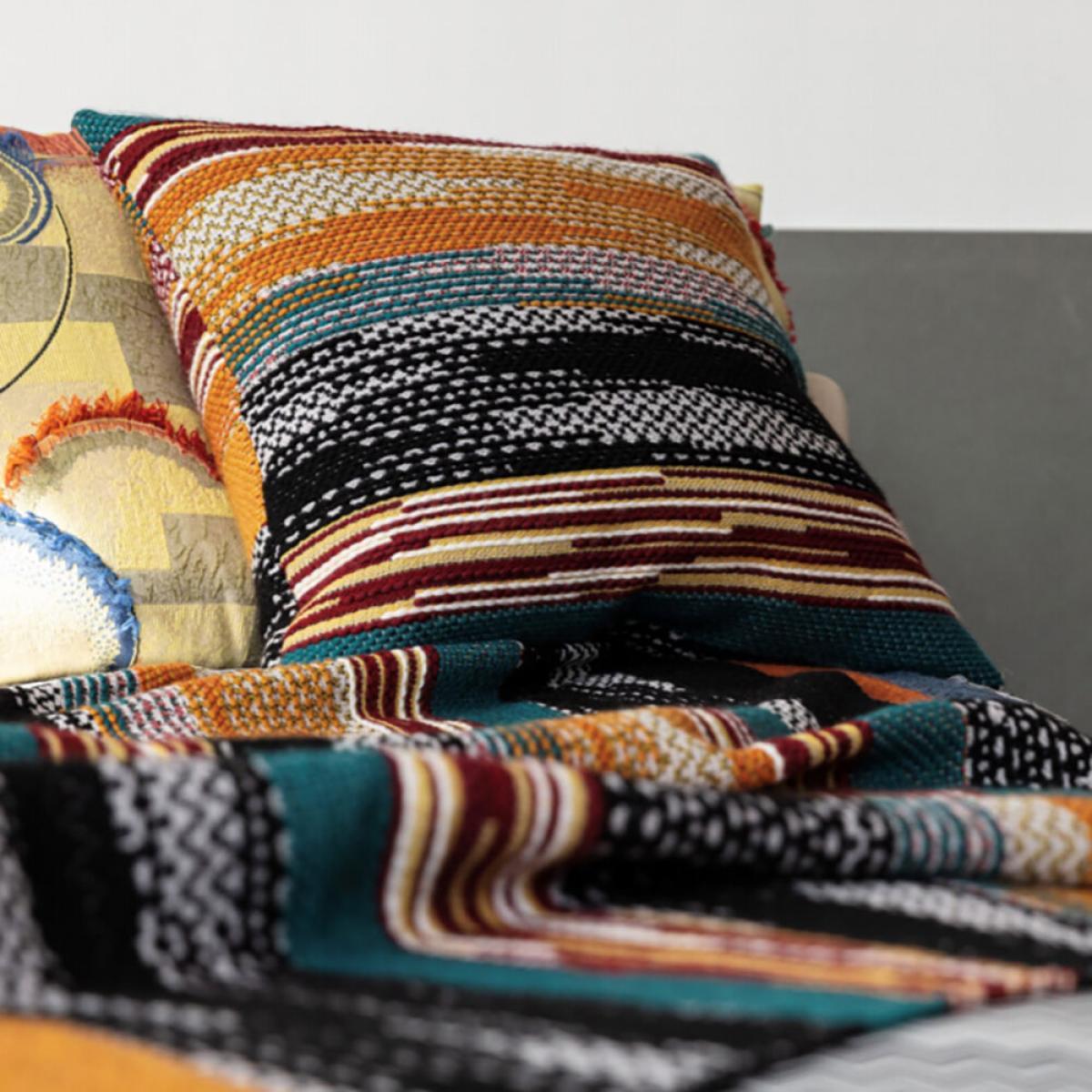 Update your interior with the iconic designs of Missoni Home. Soft to the touch, this throw features a broken striped design in warming tones. Finished with fringed edges, it’s perfect for pairing with the matching cushion available separately.