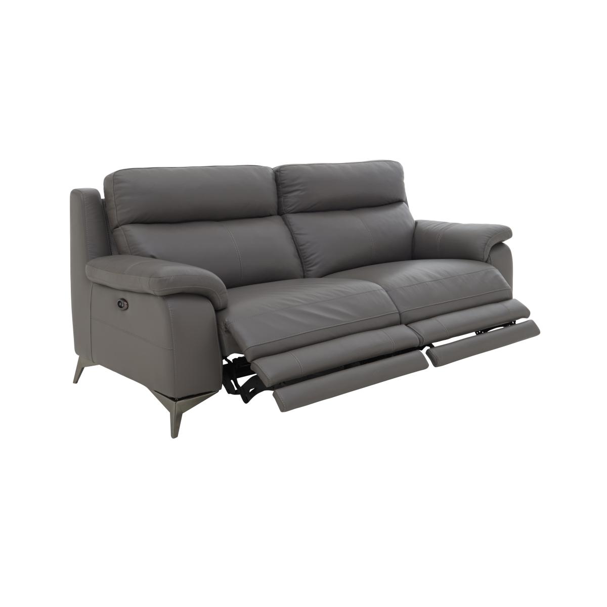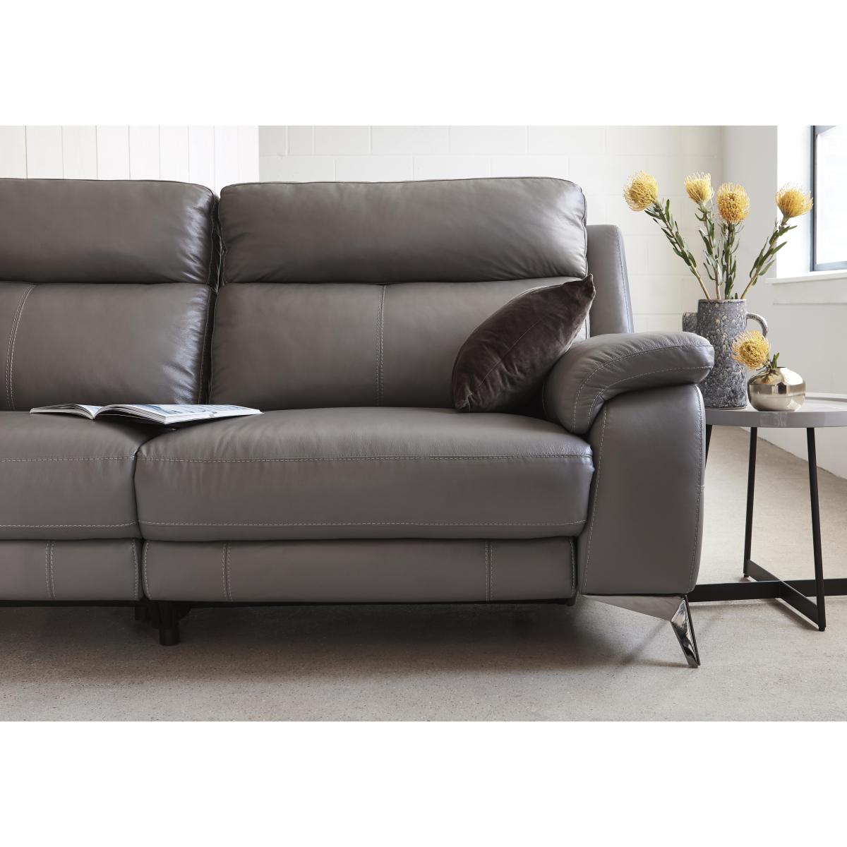 Sleek style and sublime comfort come together in the stunning Missouri range. A masterclass in comfort, its seats were made for sinking into. Deeply cushioned and sumptuously filled with fibre-topped, foam-wrapped pocket springs – a unique combination of support and exceptional comfort – for a wonderfully soft sit. Its minimalist, contemporary, open base style is the perfect way to update your living space and the statement chrome legs are an eye-catching addition. Compact in size, this stunning range brings a new level of comfort to those in smaller spaces. Choose from static, power recliner and power headrest designs that let you stretch out at the touch of a button so you can enjoy all the sumptuous comfort this range has to offer. Available in a beautiful selection of stunning colours, leather and fabrics. Only available at Furniture Village. Sumptuous pocket sprung seats for sublime comfort. Amazing new 100% leather with a soft, supple feel. Made exclusively for Furniture Village. The ultimate in sublime comfort, the World of Leather Missouri 3 Seater Leather Recliner Sofa does it all in sleek, contemporary style. Boasting soft curves and clean lines, this sofa feels just as good as it looks. Its seat cushions are sumptuously filled with a unique blend of layers to give you a super-comfortable sit: responsive pocket springs are wrapped in foam and topped with super-soft fibre for the perfect balance of exceptional comfort and support. Plus, at the touch of a button you can recline and stretch out with a smooth power recliner mechanism that cradles you in the sumptuous blown fibre back cushions. Striking chrome legs beautifully accent the amazing, new 100% leather upholstery that feels wonderfully soft and supple to the touch. Plus, its open base design and compact size brings a new kind of recliner comfort to those in smaller spaces. Also available in a static design with sinkably-soft seats. Exclusively available at Furniture Village, this stunning and sumptuously cushioned 3 seater leather recliner sofa is part of the compact and well-made Missouri range. Did you know?. Leather has unique marks and characteristics with variance in colour and texture, and softens with use. Smoothing the cushioned top prevents ‘puddling’. A slight variance in alignment and small gaps between cushions is perfectly normal in recliner sofas and chairs. Gaps usually close as interiors settle.