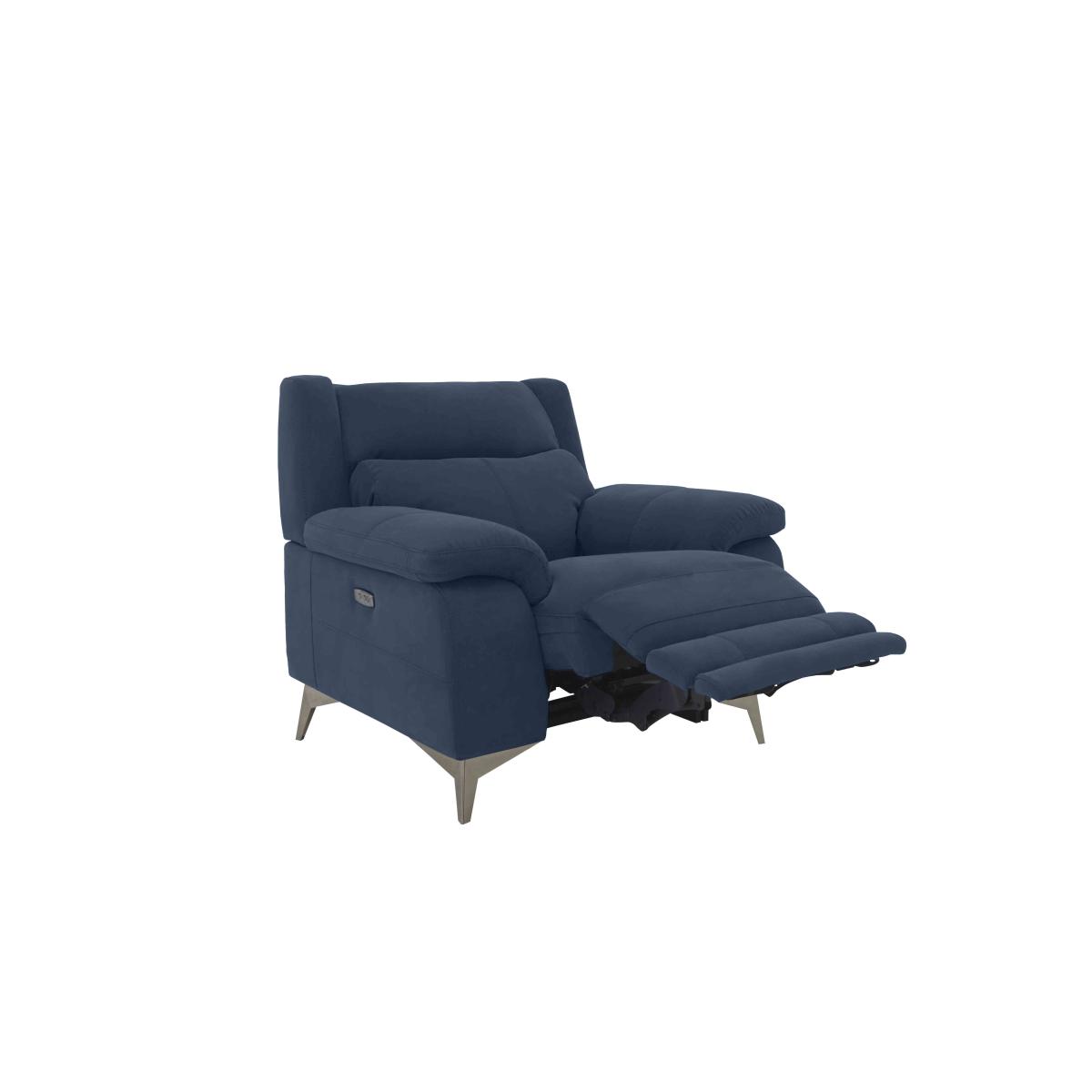 Sleek style and sublime comfort come together in the Missouri range. Designed for more compact living spaces, this collection truly is a masterclass in comfort. Its sofas and armchairs come with power recliners, power headrests and USB ports for the ultimate in relaxation, while seats provide a unique combination of support and softness thanks to the fibre-topped, foam-wrapped pocket spring cushioning. Showcasing a contemporary open-base style, 100% leather upholstery and statement chrome legs, Missouri sofas and armchairs are the perfect way to update your living space. Also available with fabric upholstery. Only at Furniture Village. This beautiful and very stylish power recliner armchair with pocket sprung seat and sumptuous cushioning makes it easy to relax. Why you'll love it This fabric power recliner armchair? We think you deserve it. Contemporary off-the-floor style with compact proportions. Comfort guaranteed thanks to the power recliner and pocket sprung seat. Supportive seat cushion with sumptuous sink-in top. Built-in USB charging. Beautiful fabric upholstery in a choice of colours. Statement chrome legs. Also available without the recliner. Exclusive to Furniture Village. This fabric power recliner armchair is part of the Missouri range. What you need to know Firm comfort level. Seat suspension: no-sag spring and pocket spring. Seat cushioning: foam-wrapped pocket spring with fibre top. Back support: rubber webbing. Back cushioning: fibre. To maintain cushion fullness, be sure to plump head, lumbar and arm areas daily. USB charging is only available with the power recliner version of this armchair. Please allow time for new recliners to ease. Minor gaps are necessary to ensure ease of recliner motion and may be exaggerated depending on floor type. Some fabrics can show wear on areas of more use or in direct sunlight. Clean regularly using a soft brush or vacuum with the curtain attachment. Deal with any spills promptly. Professional cleaning advised for oil- and grease-based stains. Please read our upholstery care guide for more advice.