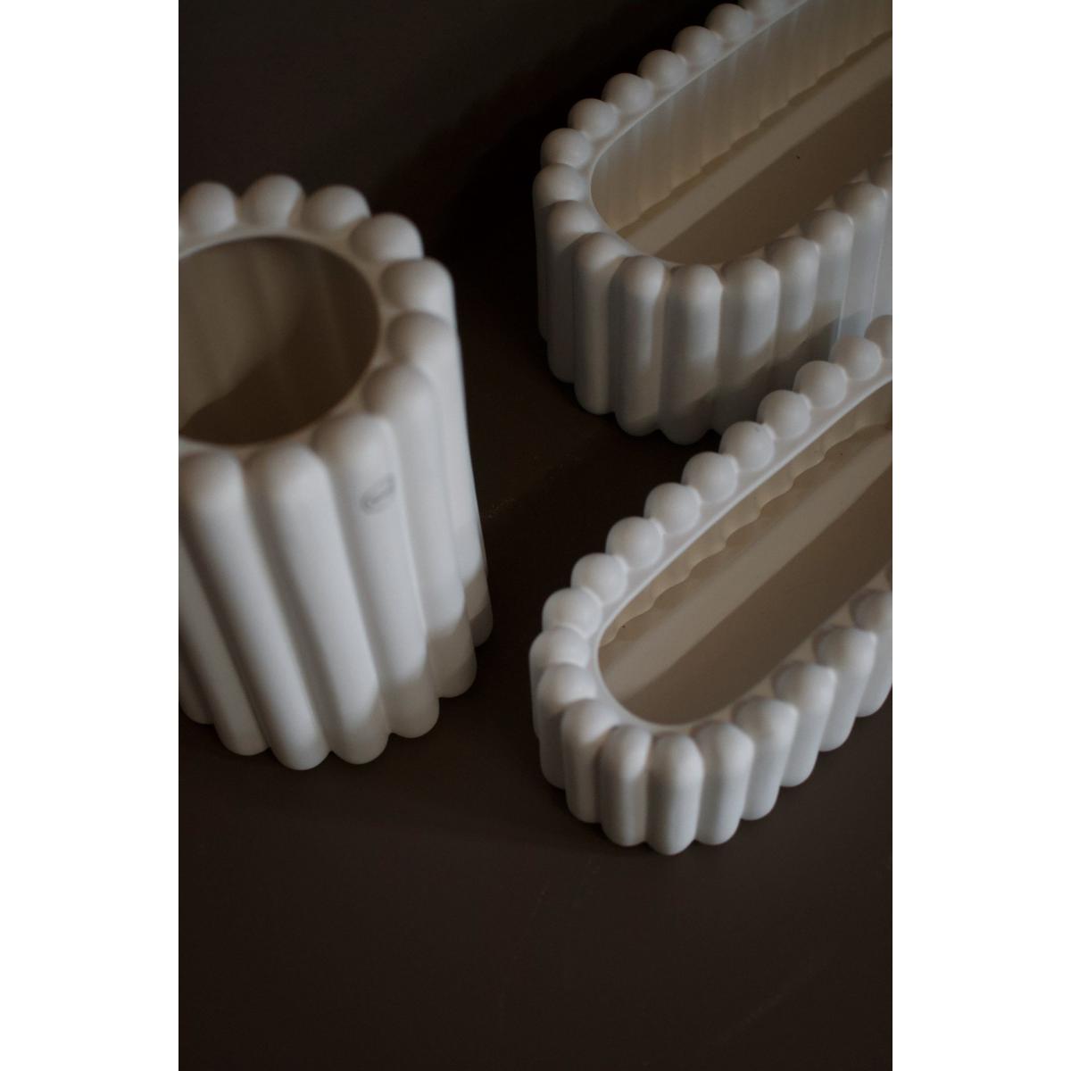I love this small oval white pot for its clean, minimalist look that easily complements a range of interiors, from Scandi to contemporary spaces. Its understated elegance allows your plants to be the focal point, making it versatile enough for both living rooms and workspaces. When styling, consider pairing it with taller or trailing plants for visual interest, and it works particularly well when grouped with other similar-sized planters for a styled vignette. Practical tips include placing a saucer underneath to protect surfaces and including a well-draining soil mix to keep your plants healthy. This pot's simple design and neutral colour make it an effortless way to add greenery without overwhelming your decor.