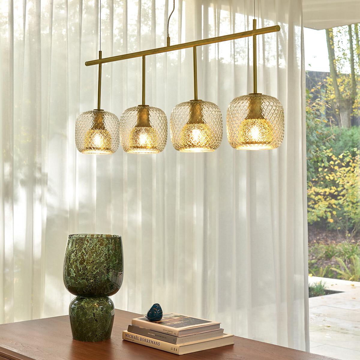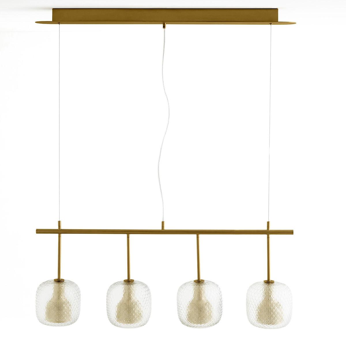 Play with light. Mistinguett is an AMPM Iconic. An Emmanuel Gallina exclusive for AMPM. More than a light fixture, Mistinguett reflects an art of living. The association of brushed brass with chiselled glass is inspired by the Art Deco movement where the elegance of the line underlined the nobility of the materials. The perforated metal diffuser combined with the glass globe produce a light with soft and diffused notes. An iconic ceiling light anchored in the brand's DNA.Product Details • Chiselled glass globe • Perforated metal diffuser • Structure in brushed brass • Suspended by 2 ropes from the steel ceiling light, adjustable in height from 20 to 130cm • 4x E27 sockets for 40W bulb (not included)Dimensions • Globe: Diameter 18 x Height min 20/max 130cm • Base: L100 x D11cm. Home delivery:Your product will be delivered to your home. Dimensions and weight of parcel1 parcel • L106 x H39 x D45cm. 8.9kg