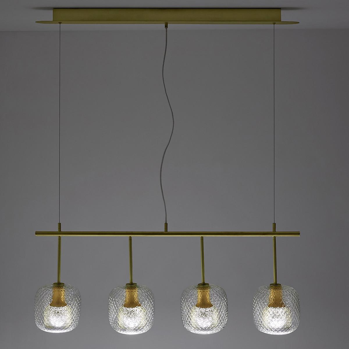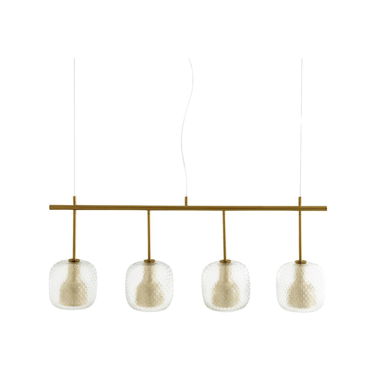 Play with light. Mistinguett is an AMPM Iconic. An Emmanuel Gallina exclusive for AMPM. More than a light fixture, Mistinguett reflects an art of living. The association of brushed brass with chiselled glass is inspired by the Art Deco movement where the elegance of the line underlined the nobility of the materials. The perforated metal diffuser combined with the glass globe produce a light with soft and diffused notes. An iconic ceiling light anchored in the brand's DNA.Product Details • Chiselled glass globe • Perforated metal diffuser • Structure in brushed brass • Suspended by 2 ropes from the steel ceiling light, adjustable in height from 20 to 130cm • 4x E27 sockets for 40W bulb (not included)Dimensions • Globe: Diameter 18 x Height min 20/max 130cm • Base: L100 x D11cm. Home delivery:Your product will be delivered to your home. Dimensions and weight of parcel1 parcel • L106 x H39 x D45cm. 8.9kg