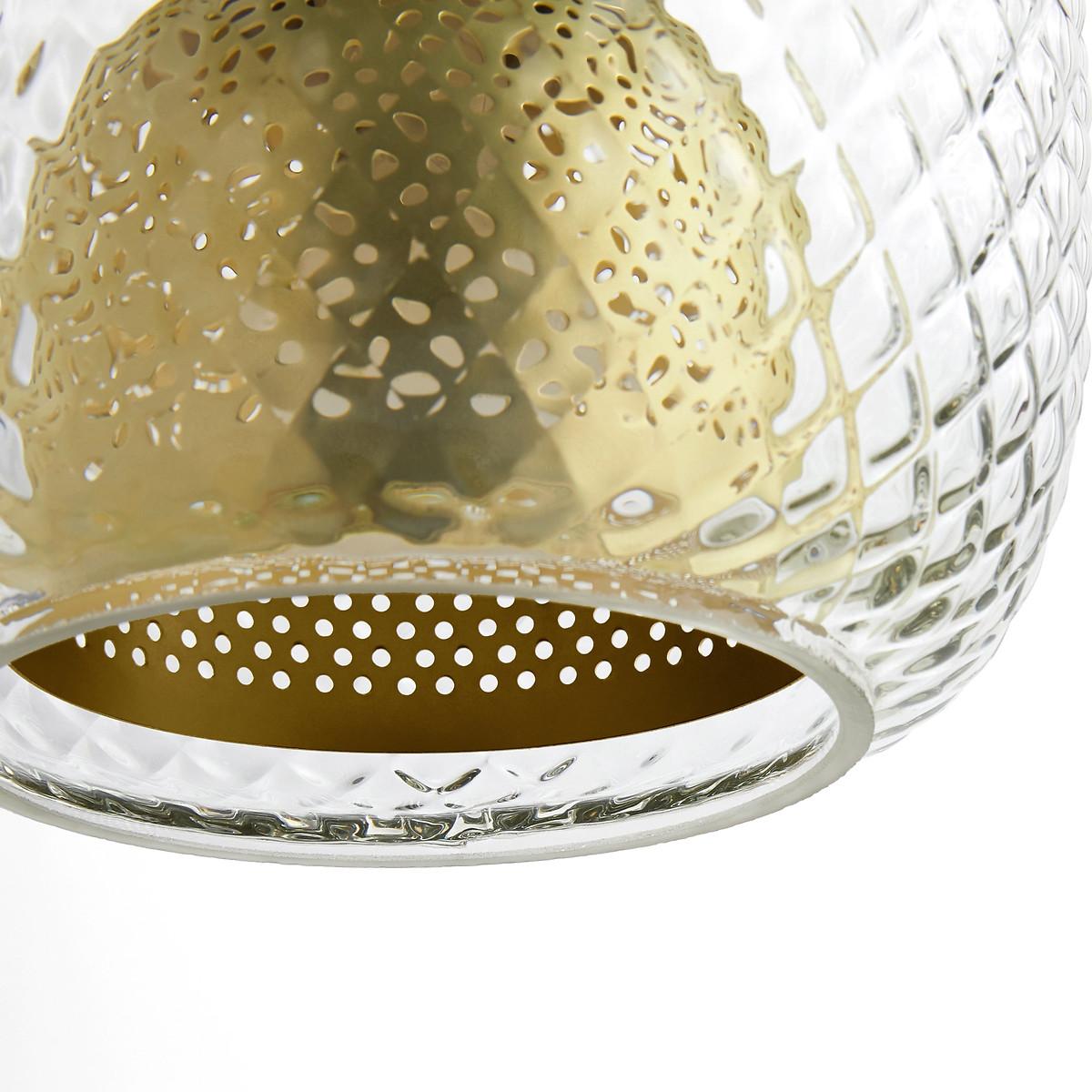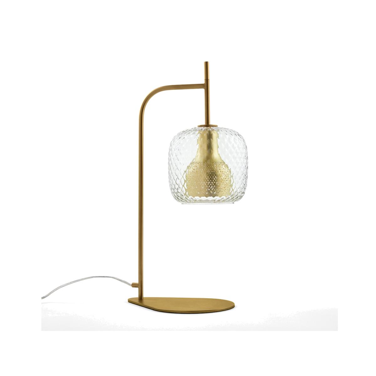 An iconic lamp anchored in the brand's DNA.The association of brushed brass with chiselled glass is inspired by the Art Deco movement where the elegance of the line underlined the nobility of the materials. The perforated metal diffuser combined with the glass globe produce a light with soft and diffused notes. A statement light fitting anchored in the brand's DNA.Product Details • Chiselled glass globe • Perforated metal diffuser • Steel tube structure and iron base • E14 socket for 40W bulb (not included)Dimensions • Globe:Diameter 18cm • Base: L27.2 x D18.4cm • Total lamp height: 52cm • Weight: 2.37kg Parcel Dimensions1 parcel • L34.5 x D31 x H63cm. 3.61kg