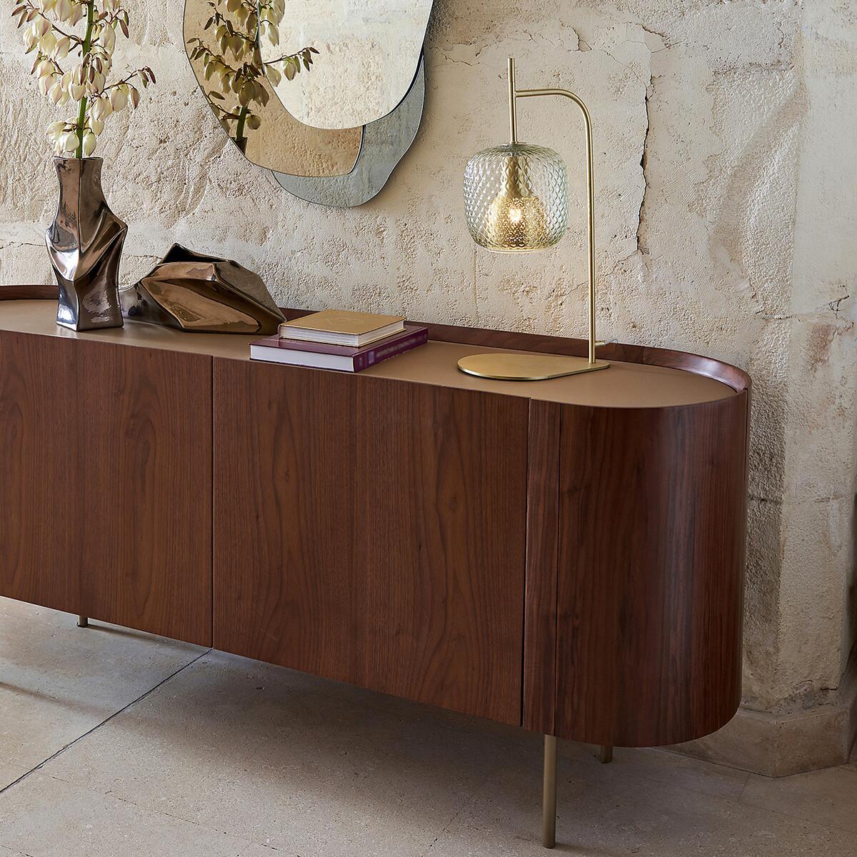 I love this old-school table lamp for its elegant mix of brass and textured glass, making it a versatile addition to both contemporary and vintage-inspired interiors. It works particularly well in cosy living rooms or bedside settings where a warm glow is needed, but it can also elevate a minimalist desk setup. Practical styling tips include pairing it with neutral or soft-toned furnishings to highlight its metallic and glass details, or using it alongside other brass accents to create a cohesive look. Its compact size makes it ideal for smaller spaces or as a statement piece on a side table, adding personality and a touch of luxe.