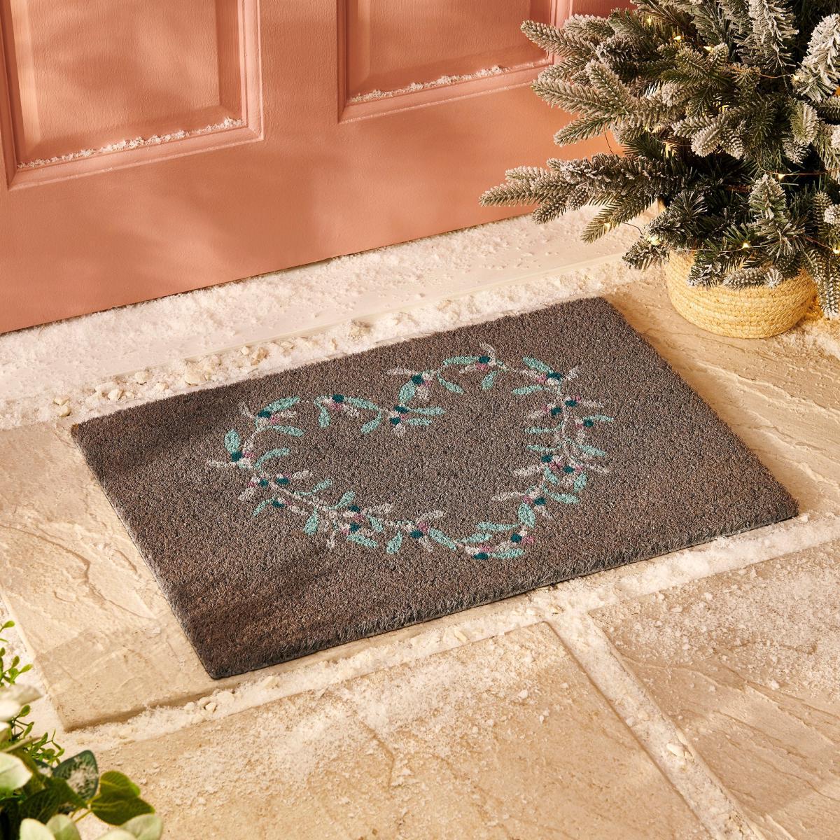 I love this doormat for its charming heart-shaped design, which adds a warm, welcoming touch right at your doorstep. The grey and green tones make it versatile enough to suit a range of interior styles, from modern minimalism to rustic country. It works especially well in homes that embrace natural or muted colour schemes, offering a subtle pop of colour without overwhelming the aesthetic. Practical tips include pairing it with a simple wreath or planters on either side of the door to create a cohesive look, and placing it in covered porch areas to prolong its lifespan outdoors. Its understated style makes it a great choice for both everyday use and festive decorating.