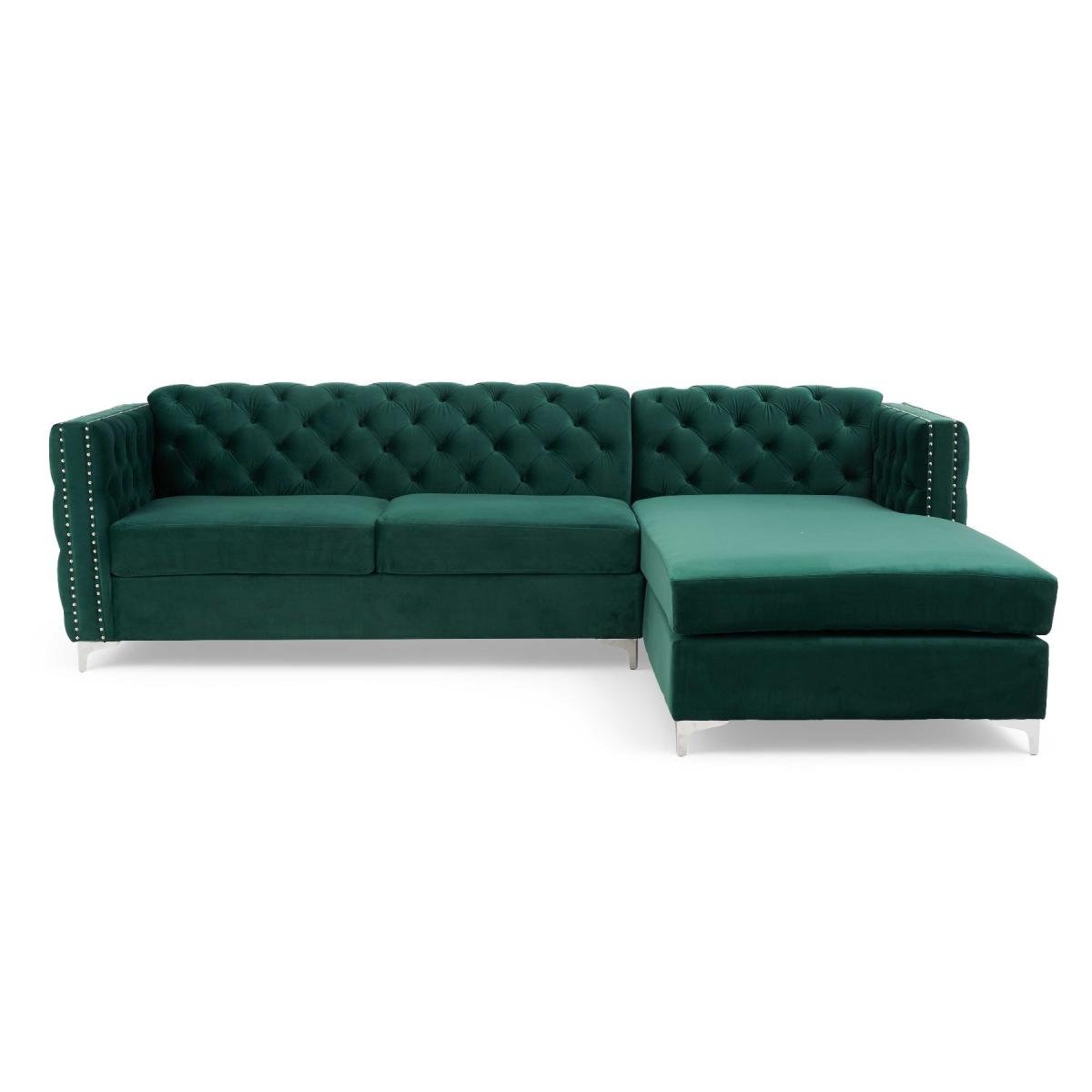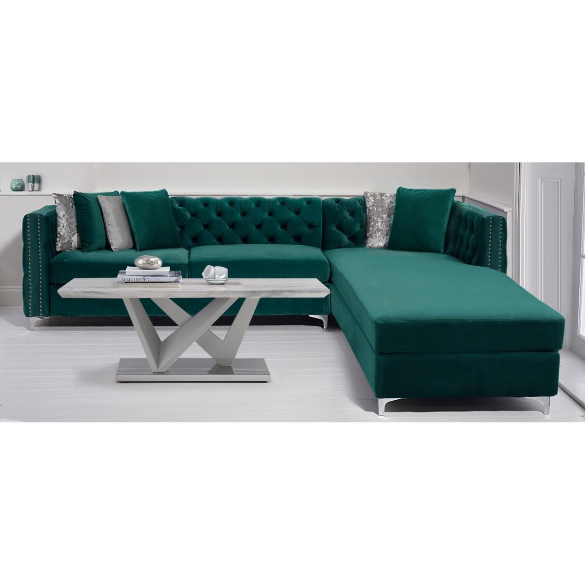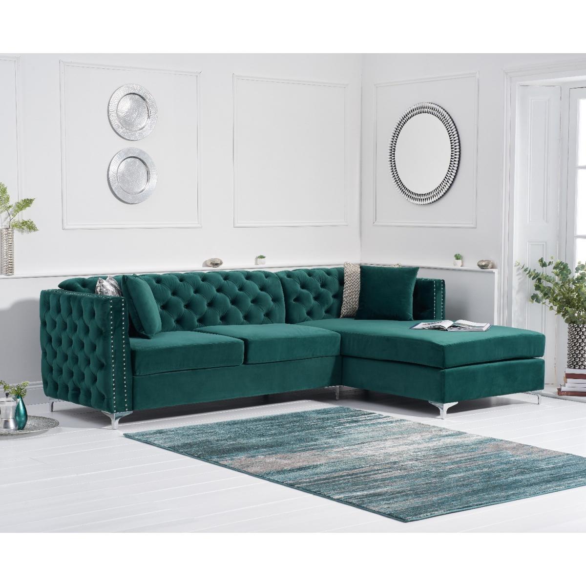 Mistral Right Facing Green Velvet 4 Seater Corner Chaise Sofa