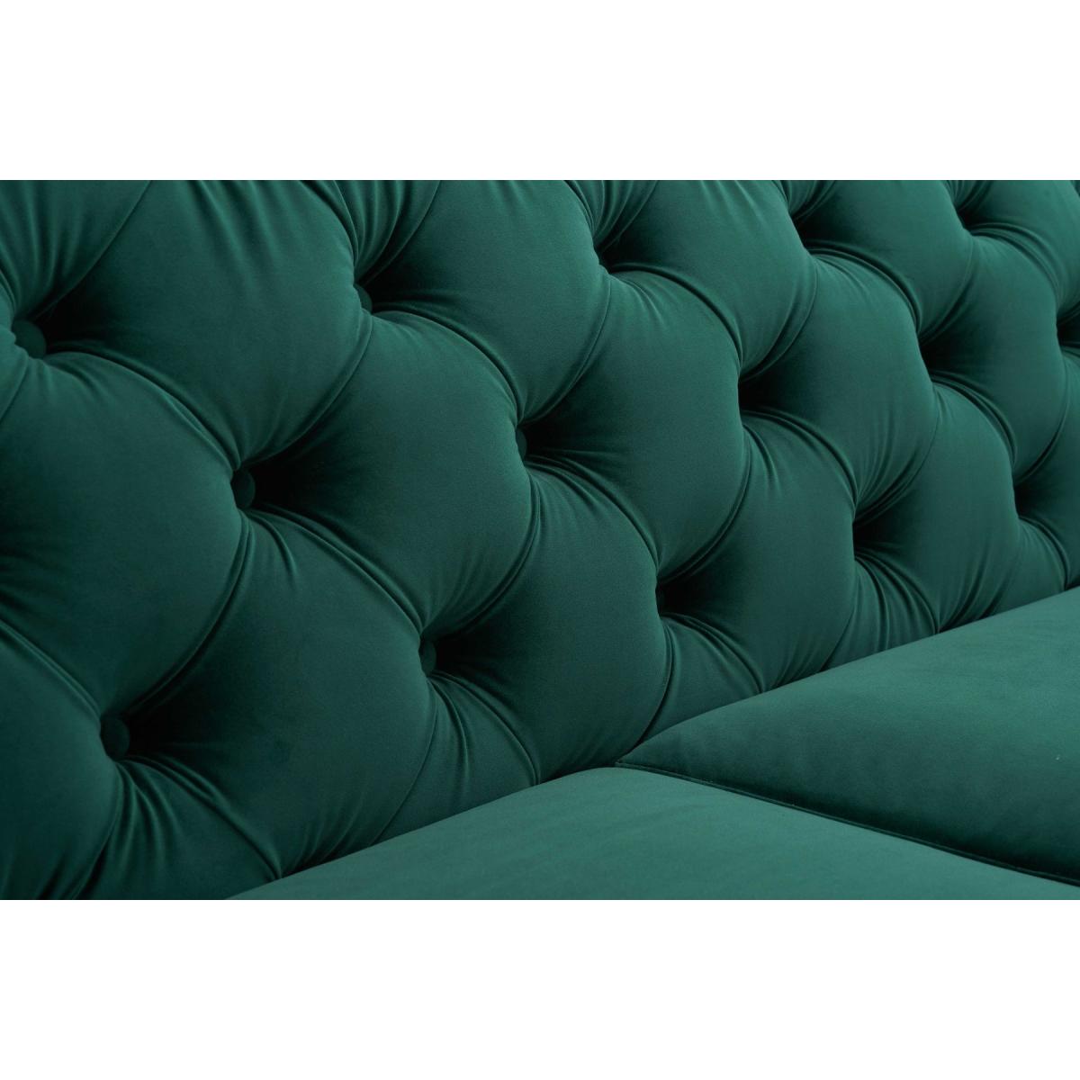 Opulent and modern, the Mistral right facing chaise is perfect for adding a touch of glamour to your living space. Featuring sumptuous upholstery, statement deep-buttoning, high armrests and complementary chrome feet this is the ideal sofa for modern homes. Modern design with deep-buttoning Chesterfield style design. Expertly upholstered in sumptuous green velvet. Right facing chaise