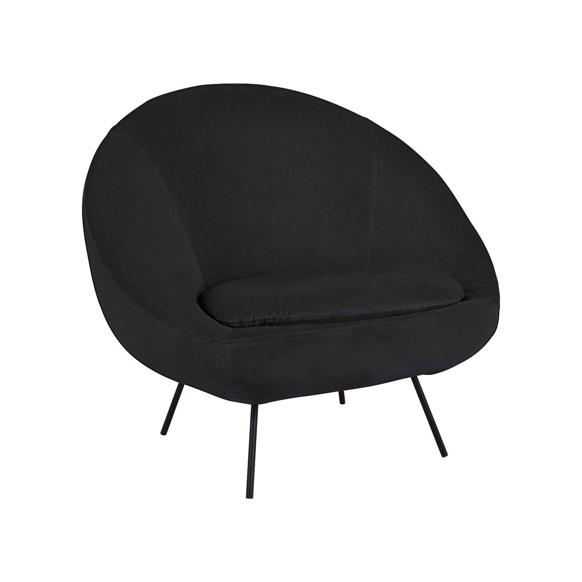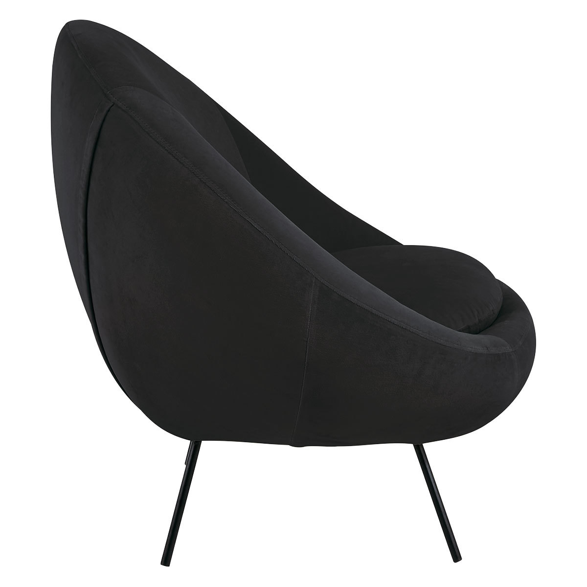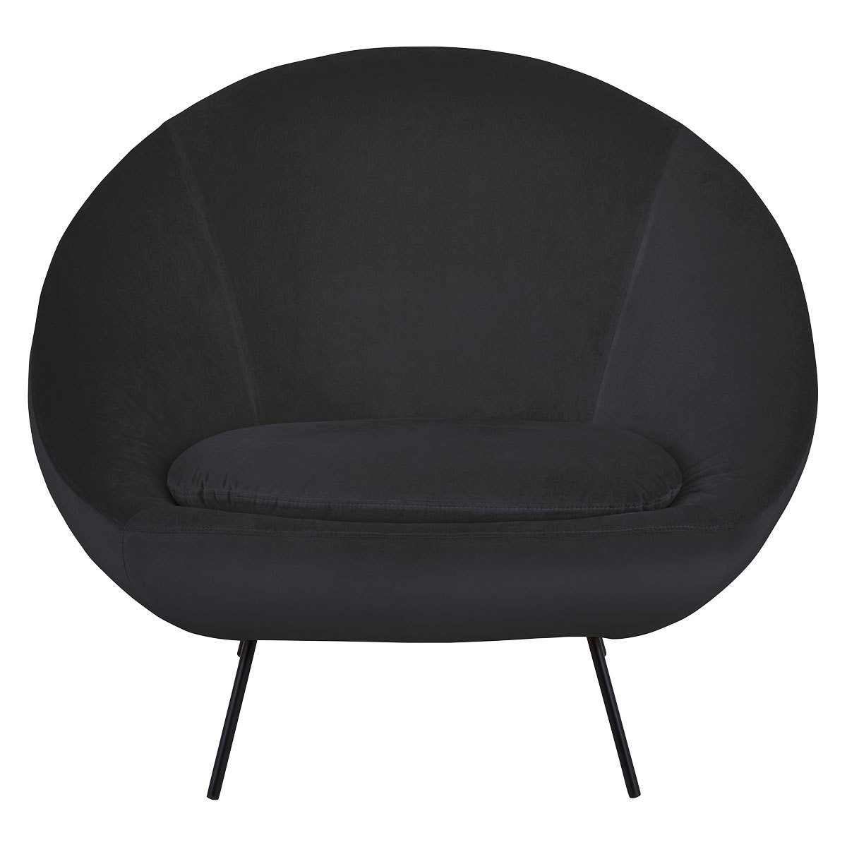 Compact and curvaceous, the Misty Charcoal easy velvet armchair invites you to sink into its deep seat and unwind. The retro-inspired design has a fixed seat cushion and slender yet strong black metal legs;add the matching Misty footstool and relax completely. Upholstered in our easy velvet fabric which is super durable and spill-resistant, it’s perfect for busy homes