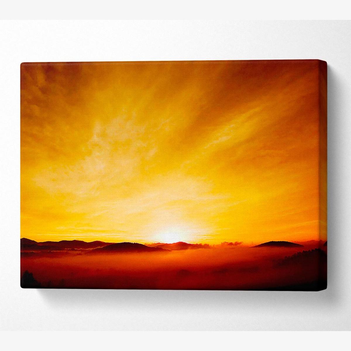 Misty Morning Sunrise Canvas Print Wall Art - Yellow / 81.28cm