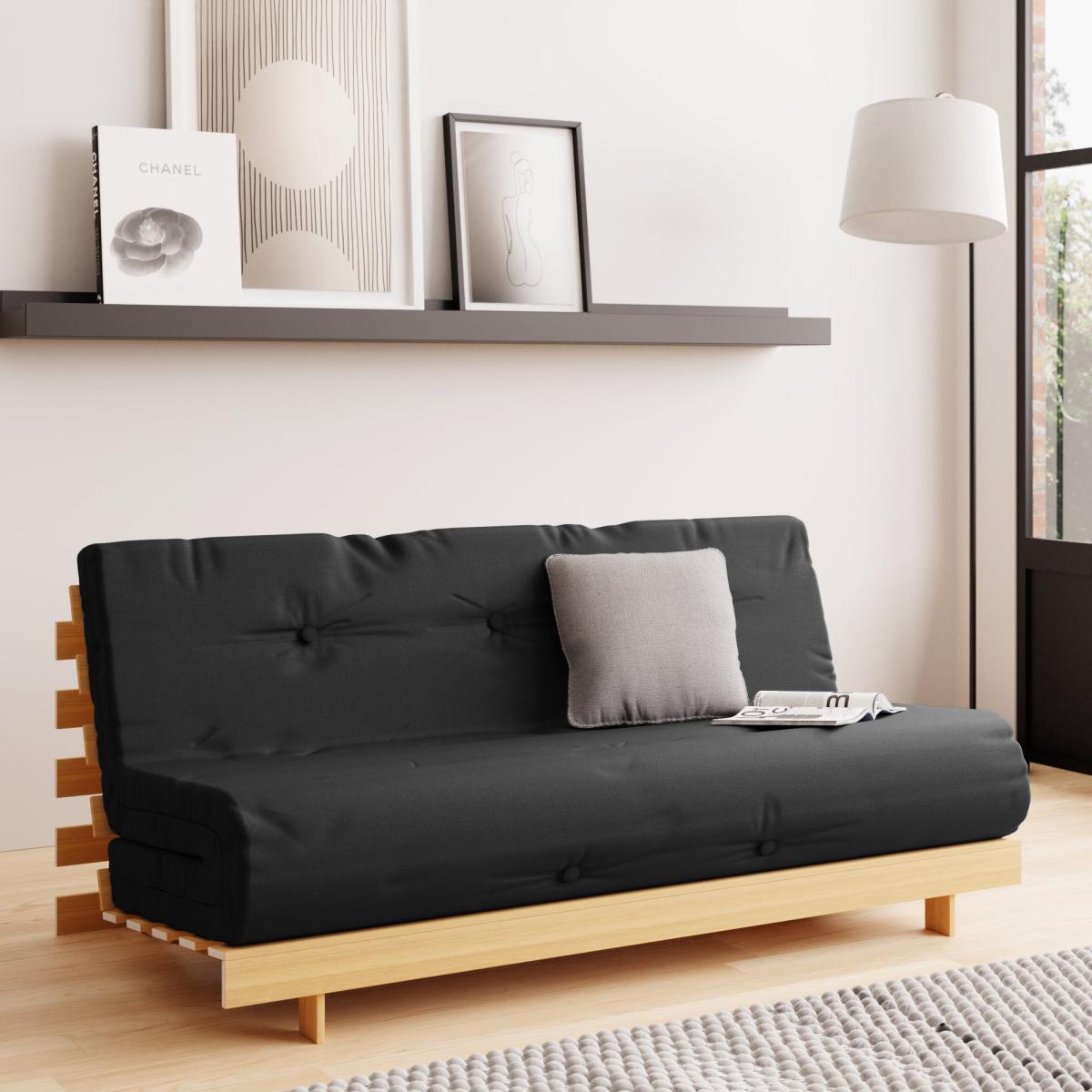 I really like the Mito double futon for its sleek, minimalist style that works well in both modern and Scandinavian-inspired interiors. Its black upholstery keeps it versatile and easy to style around, whether paired with colourful cushions for a cosy look or kept simple for a more contemporary feel. It’s perfect for compact spaces or multi-functional rooms because it combines comfort with practicality. For styling, consider layering it with textured textiles like wool throws or velvet cushions to soften the look, and place it against a light wall to create contrast. This piece is ideal for studio apartments or guest rooms, offering both seating and sleeping options without overwhelming the space.