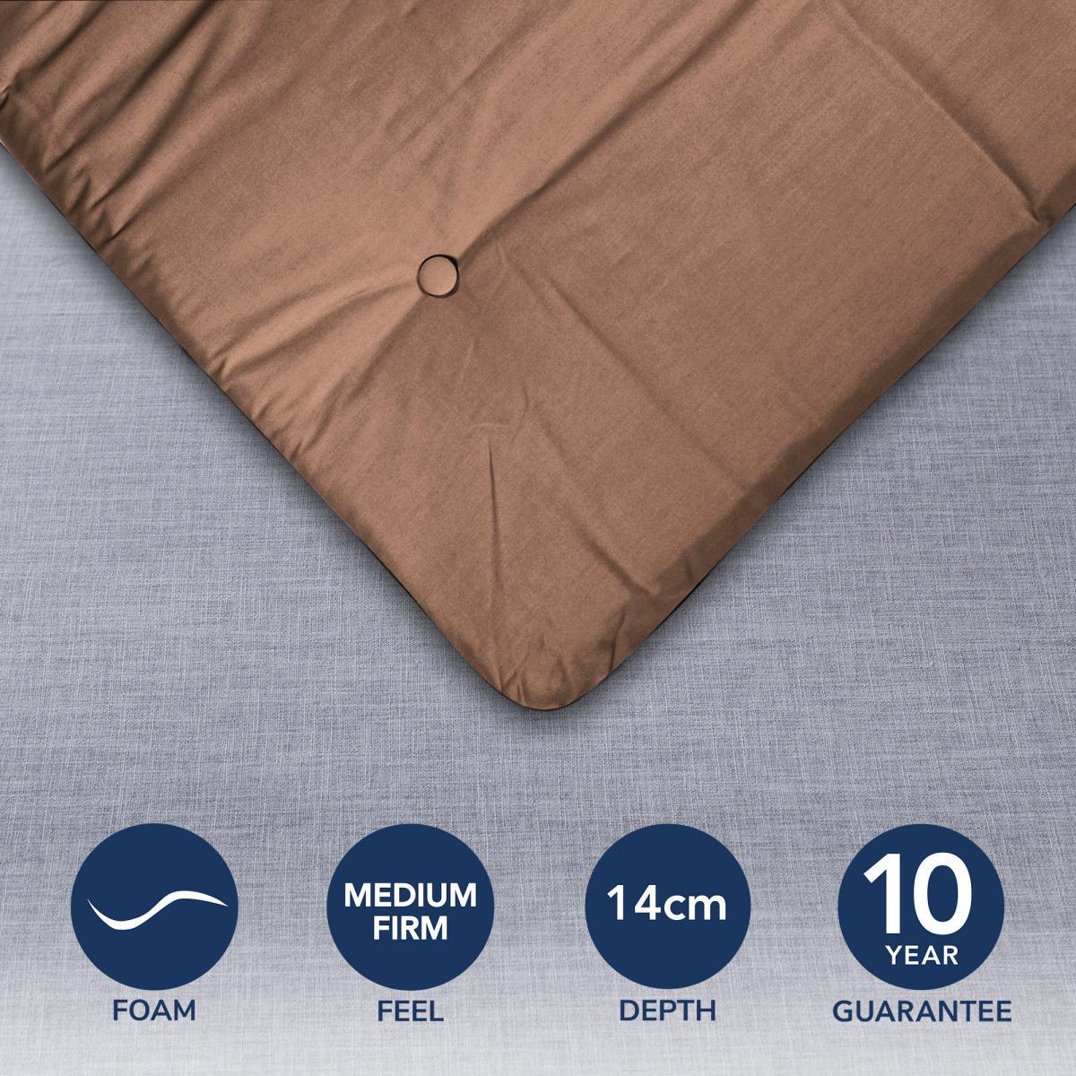 A handy, versatile futon mattress for the modern home in a timeless design to complement any decor. The Mito Single Futon Mattress features a great space saving solution for where space is at a premium. The mattress is made from a quality cotton drill with button design. Please note, unfortunately we cannot deliver this item to the Channel Islands. For more information on different mattress types, please visit our Mattress buying guide. To check out our handy sizing guide to help you find out if you’ll be able to get your new mattress into your home.
