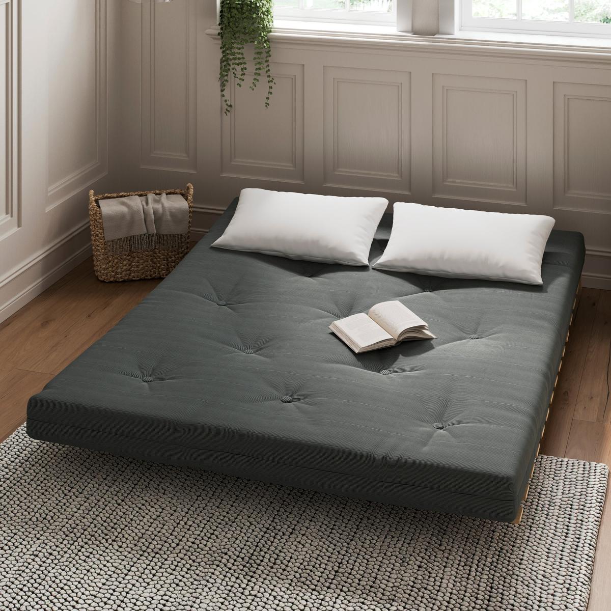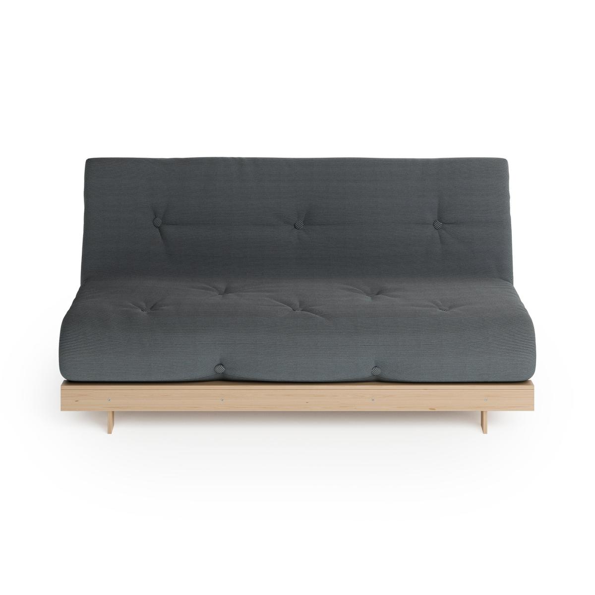 * 2 Seater, Double Size Futon* Cotton Blend Fabric* Soft, Ribbed Upholstery* Pine Wood Frame* 2-in-1:Seat & Bed* Multiple Colour Options Experience the ultimate space-saving solution with the Mito Double Futon! This remarkable piece effortlessly converts from a comfortable seat to a spacious double bed, making it a perfect addition to any home. Crafted from solid pine, it combines durability and strength with a touch of rustic charm.