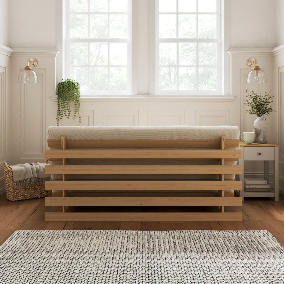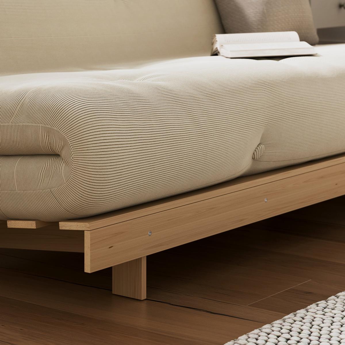 * 2 Seater, Double Size Futon* Cotton Blend Fabric* Soft, Ribbed Upholstery* Pine Wood Frame* 2-in-1:Seat & Bed* Multiple Colour Options Experience the ultimate space-saving solution with the Mito Double Futon! This remarkable piece effortlessly converts from a comfortable seat to a spacious double bed, making it a perfect addition to any home. Crafted from solid pine, it combines durability and strength with a touch of rustic charm.