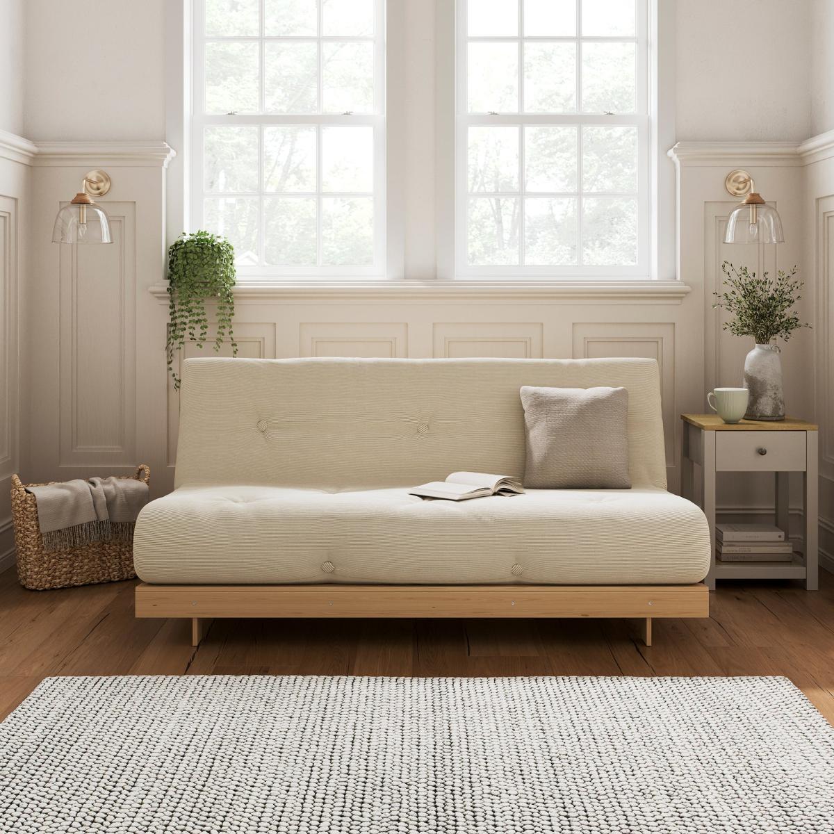 I love this futon for its versatility and understated elegance. The mink ribbed fabric adds a layer of cosy texture, making it ideal for a relaxed, contemporary or minimalist interior. It works particularly well in small spaces or open-plan areas where flexibility is key, as it can easily shift from a sofa to a bed. For styling, consider pairing it with neutral-toned cushions and a simple throw to enhance its chic simplicity. Keep the surrounding accessories minimal to let the textured upholstery stand out, or introduce a pop of colour through cushions or throws for a more lively look. Overall, it’s a practical yet stylish choice for modern living spaces.