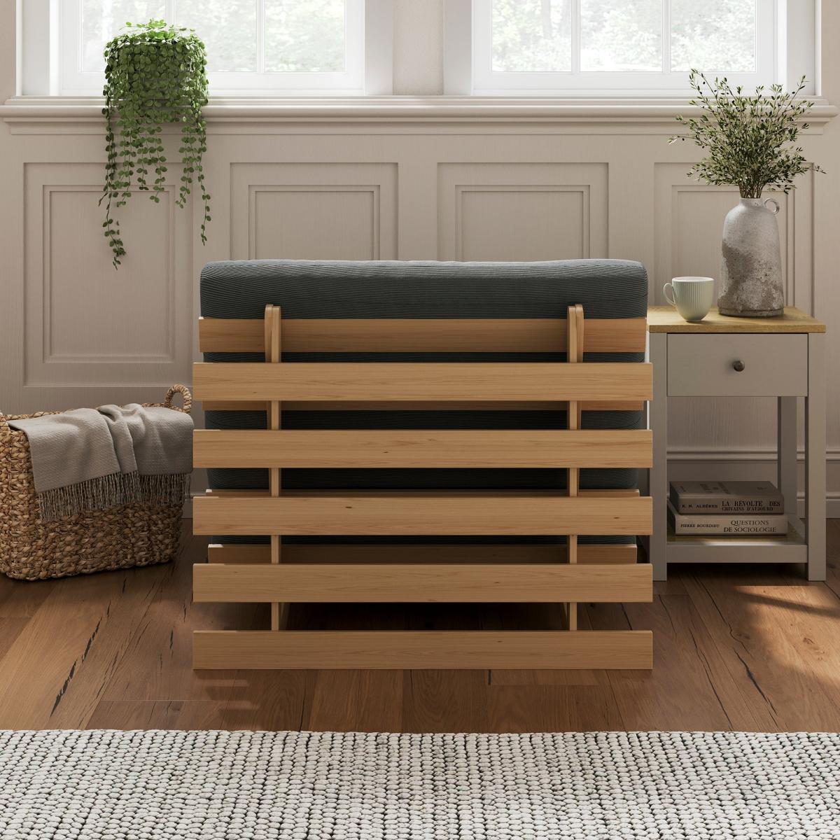 This futon’s ribbed fabric in midnight blue offers a versatile and contemporary look that works well in both modern and minimal interiors. I love how it adds a subtle texture to the space without overwhelming it, making it ideal for smaller rooms or multifunctional areas like guest rooms or studio apartments. For styling, consider pairing it with neutral-toned cushions and throws to soften the overall aesthetic, or add a few colourful accessories for a pop of personality. Practical tips include keeping the bedding light and simple for a sleek finish, and placing it against a contrasting wall to highlight its clean lines. It’s a great choice for anyone looking for a functional piece that doesn’t compromise on style.