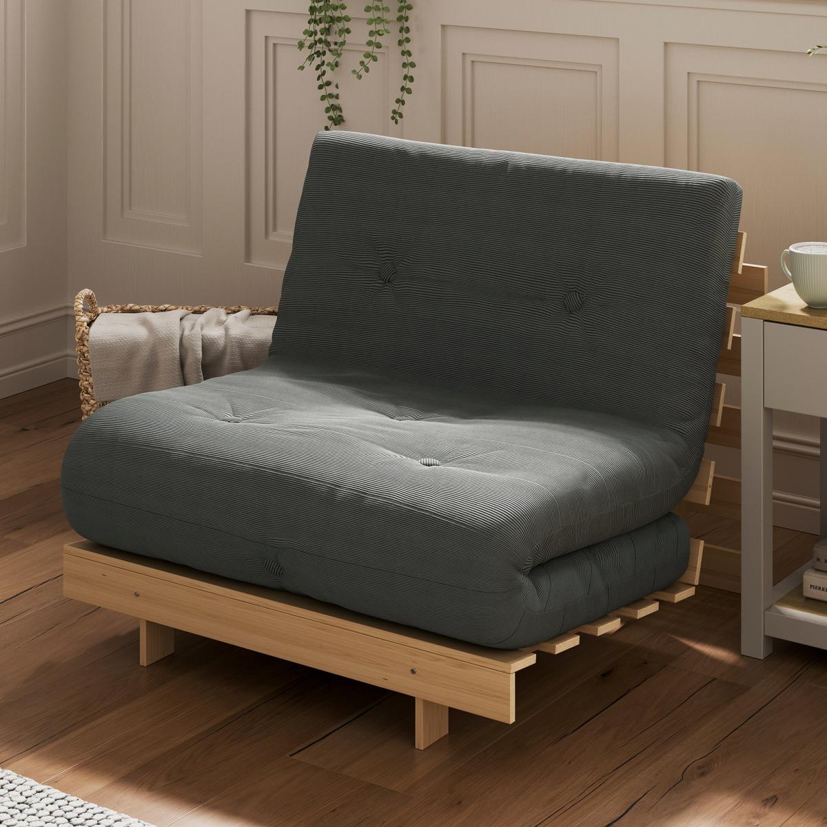 * Single Seater, Single Size Futon* Cotton Blend Fabric* Soft, Ribbed Upholstery* Pine Wood Frame* 2-in-1:Seat & Bed* Multiple Colour Options Experience the ultimate space-saving solution with the Mito Single Futon! This remarkable piece effortlessly converts from a comfortable seat to a single bed, making it a perfect addition to any home. Crafted from solid pine, it combines durability and strength with a touch of rustic charm.