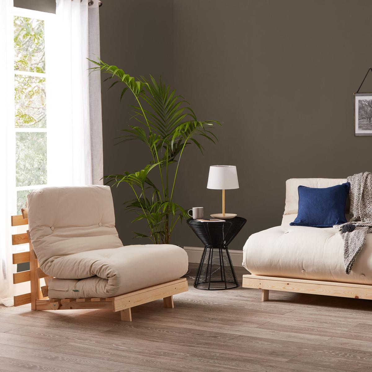 A handy, versatile futon for the modern home in a timeless design to complement any decor. The Mito Single Futon features a great space saving solution for where space is at a premium. This Futon folds out easily from a seat to a comfortable single bed for guests. The Mito Single Futon is constructed from solid pine and comes complete with a quality fibre blend button design mattress. Open Bed Width: 76cm. Open Bed Depth: 195cm. Box 1: 79cm x 85cm x 21. 5cm (12kg). Box 2: 56cm x 76cm x 56cm (8kg). Please note, unfortunately we cannot deliver this item to the Channel Islands. To check out our handy sizing guide to help you find out if you’ll be able to get your new furniture into your home.