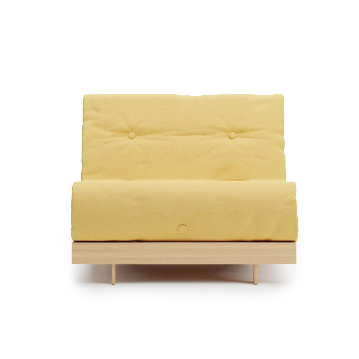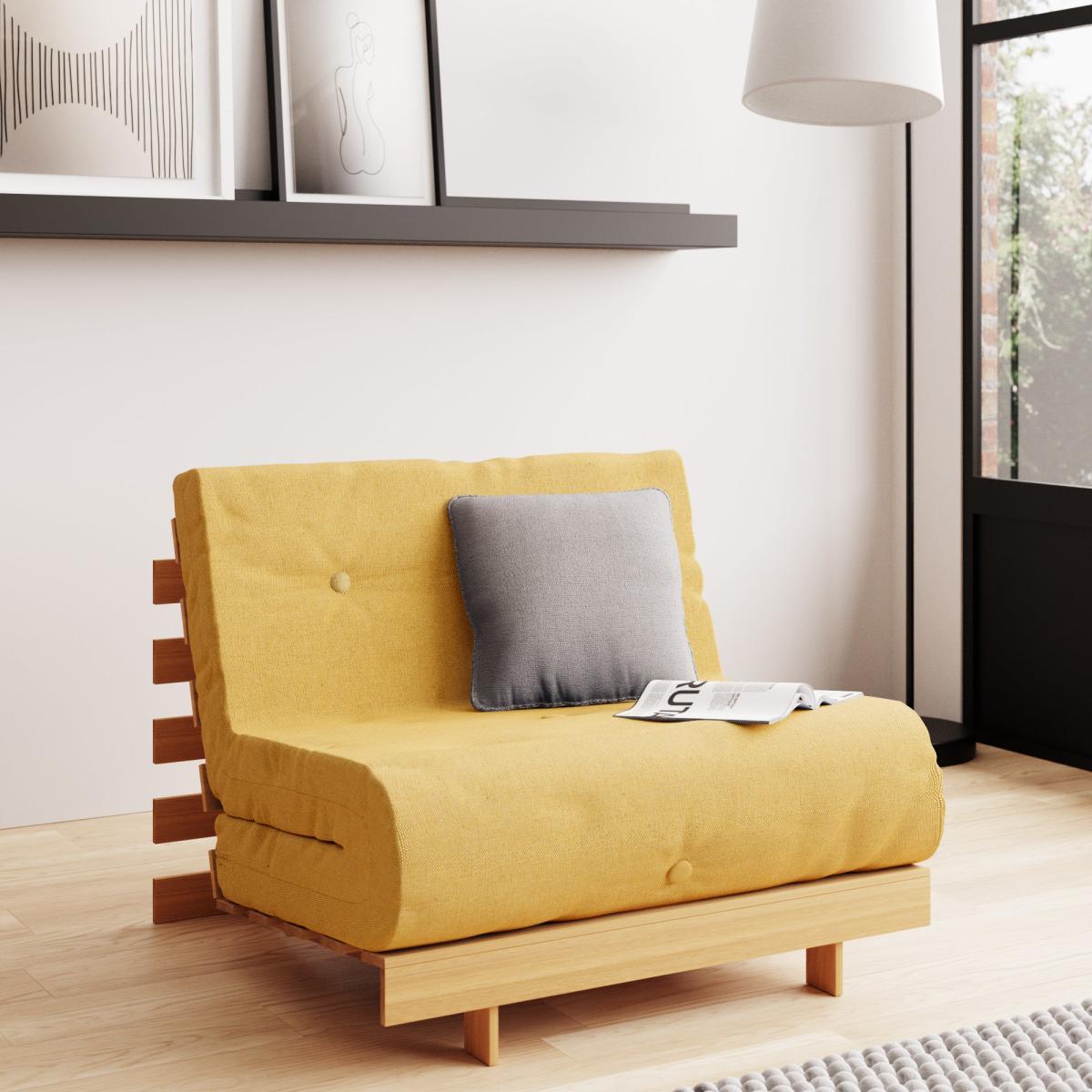I love the Mito single futon for its vibrant ochre colour, which brings warmth and energy to a space without overwhelming it. It’s a versatile piece that works well in contemporary or Scandinavian-inspired interiors, especially where a pop of colour is needed for visual interest. To style it effectively, consider pairing with neutral accessories such as grey or beige cushions, as shown, to keep the look balanced. It also lends itself well to small living areas or multi-purpose rooms, offering both seating and a practical place to relax or sleep. Keep the surrounding decor minimal and modern to let the yellow stand out, and consider adding natural textures like wood or linen to complement its simple, clean lines.