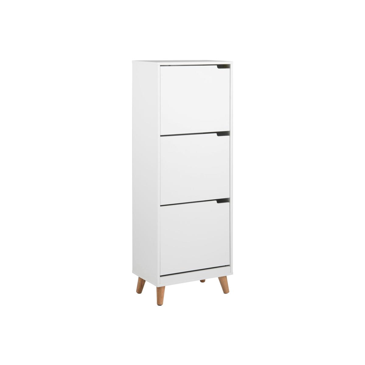 Organise your footwear in this Mitra Shoe Cabinet. Ideal for keeping entryways and rooms clutter-free, this sleek cabinet effortlessly fits various decor styles. It includes three flip-down drawers complete with sleek handles for convenience and style. With oak-coloured legs, this cabinet has a raised design that also ensures hassle-free cleaning.
