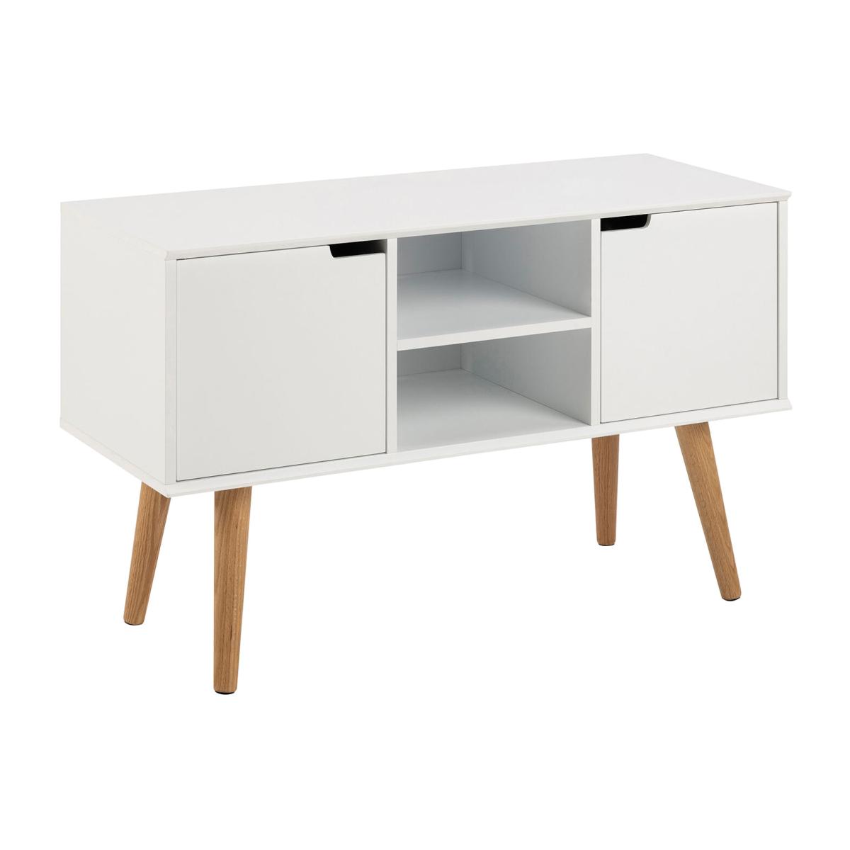 I’m a fan of this white sideboard for its clean lines and slim profile - it’s easy to slot into living rooms, hallways or home offices without overwhelming the space. The oak-effect legs give a nod to Scandi and mid-century styles, so it pairs well with muted palettes, natural textures and green plants. For styling, tuck clutter into the cupboard sections and use the open shelves for a neat stack of books or display boxes. Top the unit with a simple mirror, a low vase and a table lamp to balance function and flair.