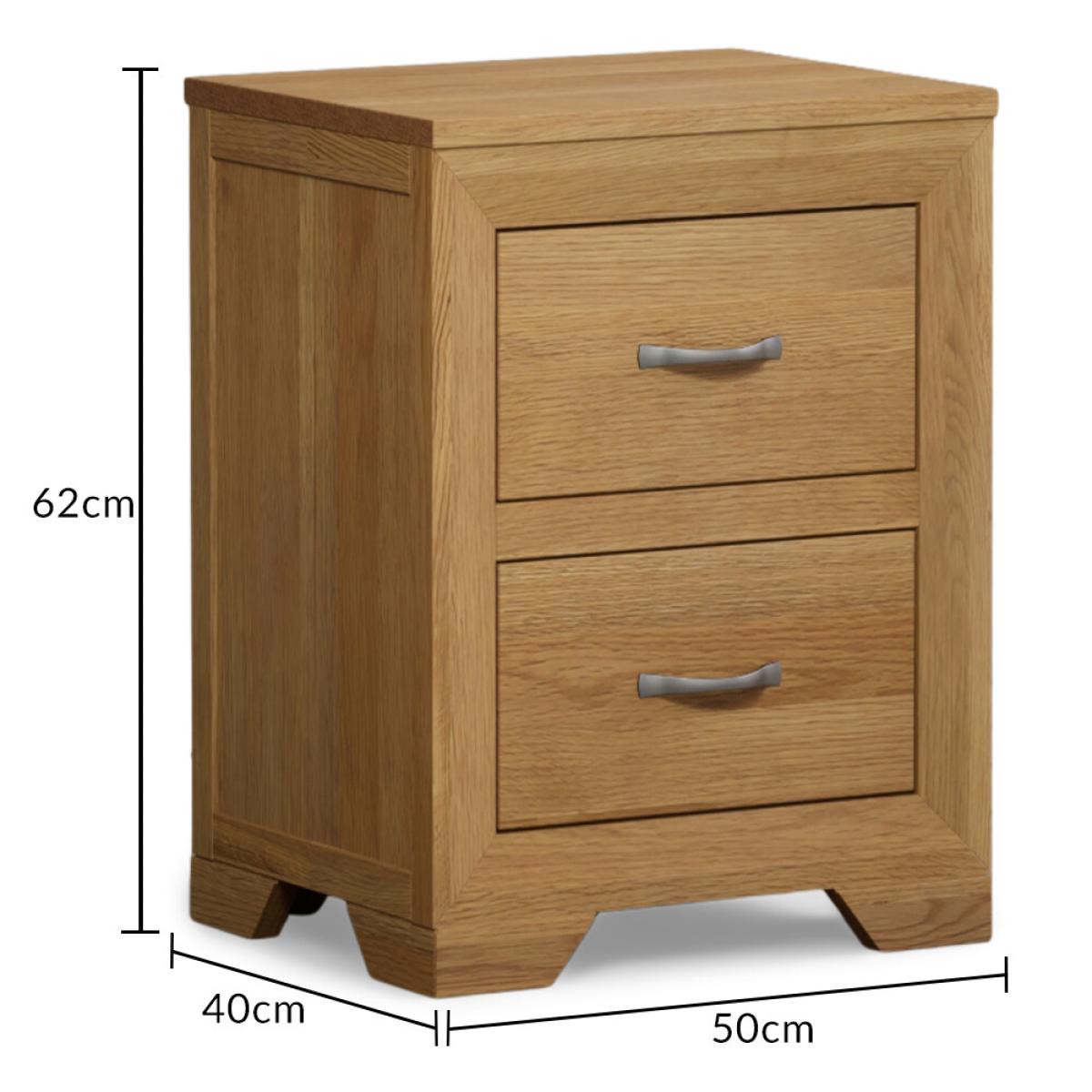 Mitre Solid Oak 2 Drawer Bedside Chest