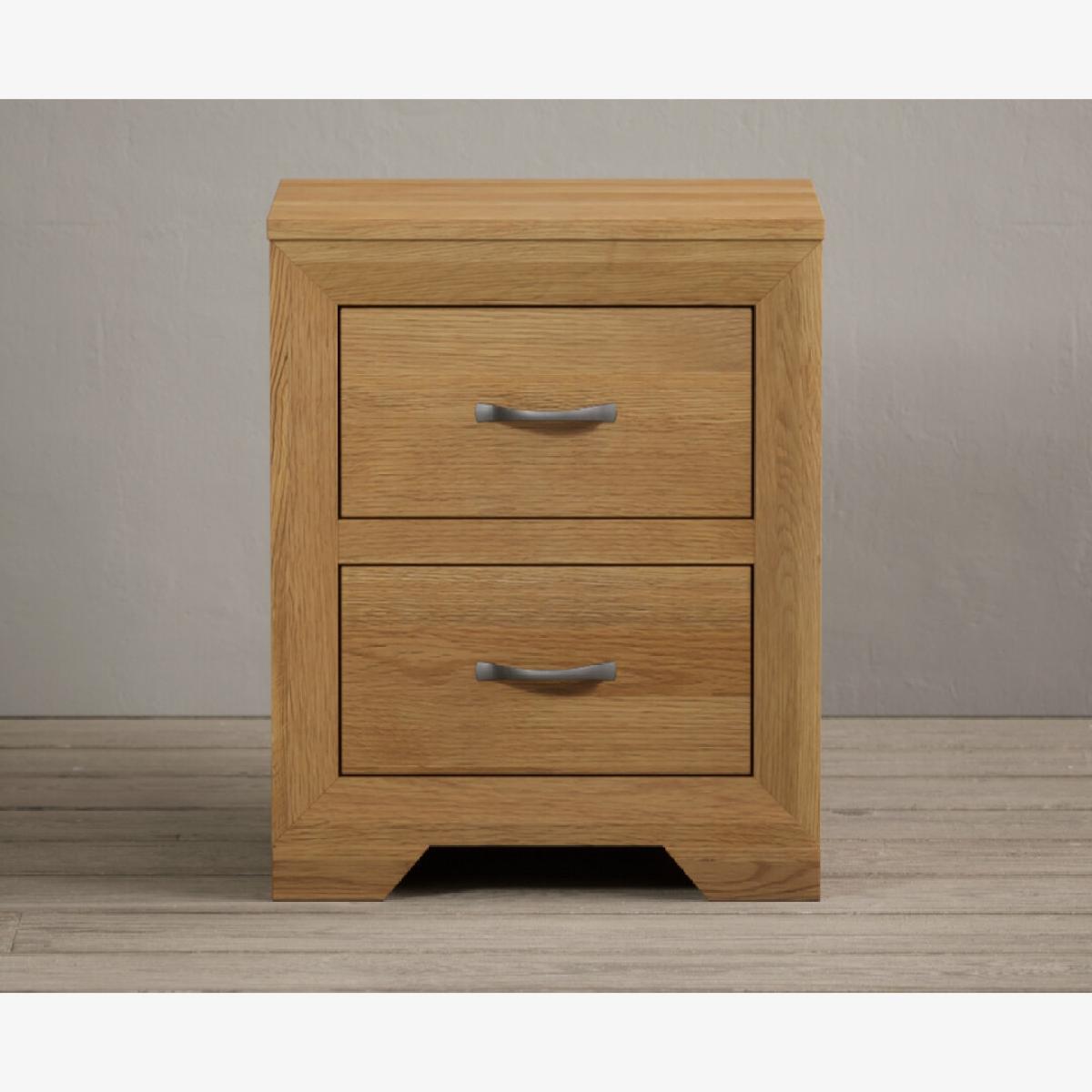 The Mitre Solid Oak 2 Drawer Bedside Cabinet is crafted from 100% solid oak, with a natural finish and dovetail drawers.