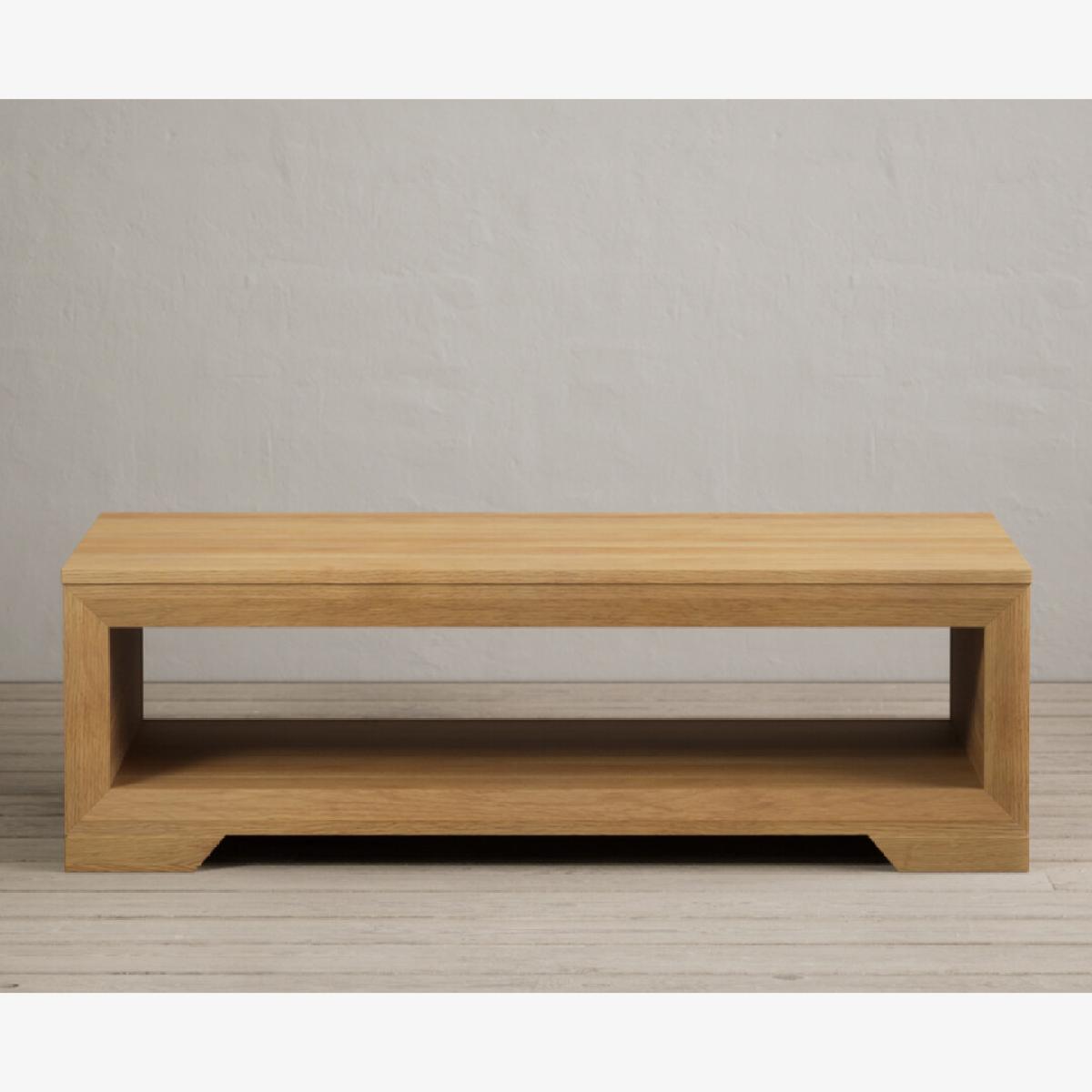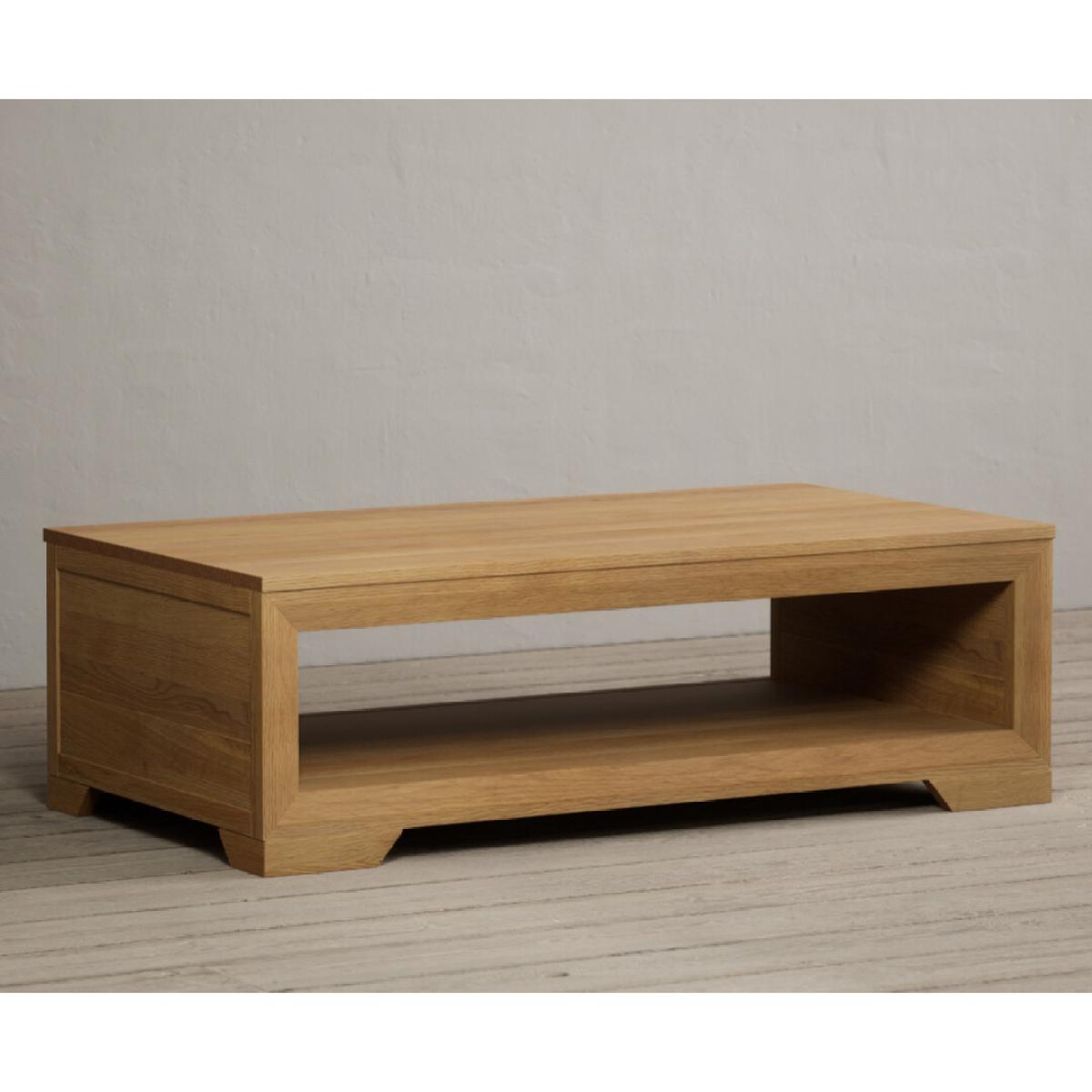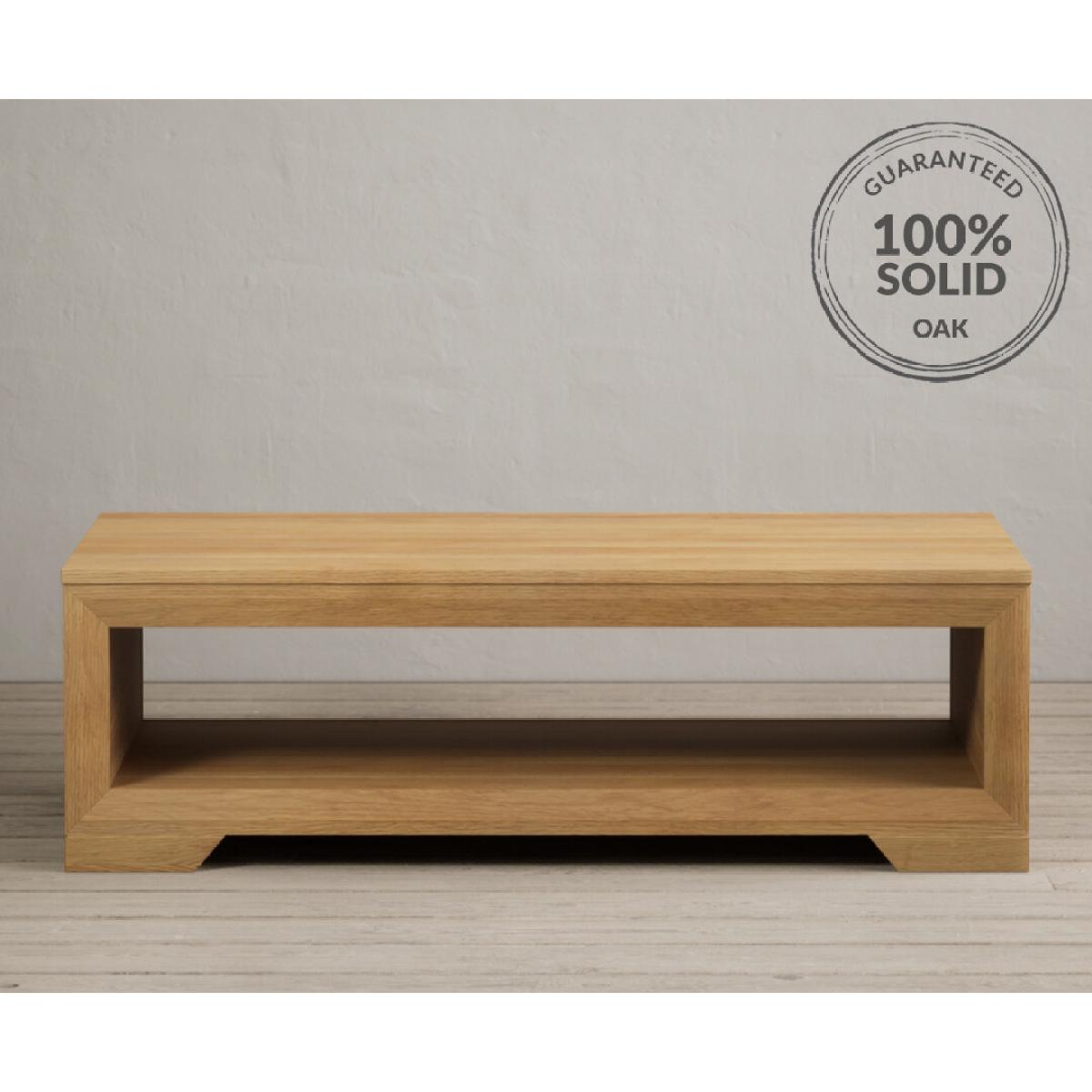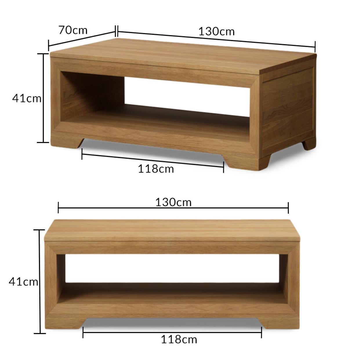 The Mitre Solid Oak Coffee Table is crafted from 100% solid oak, with a natural finish and generous open shelf space.