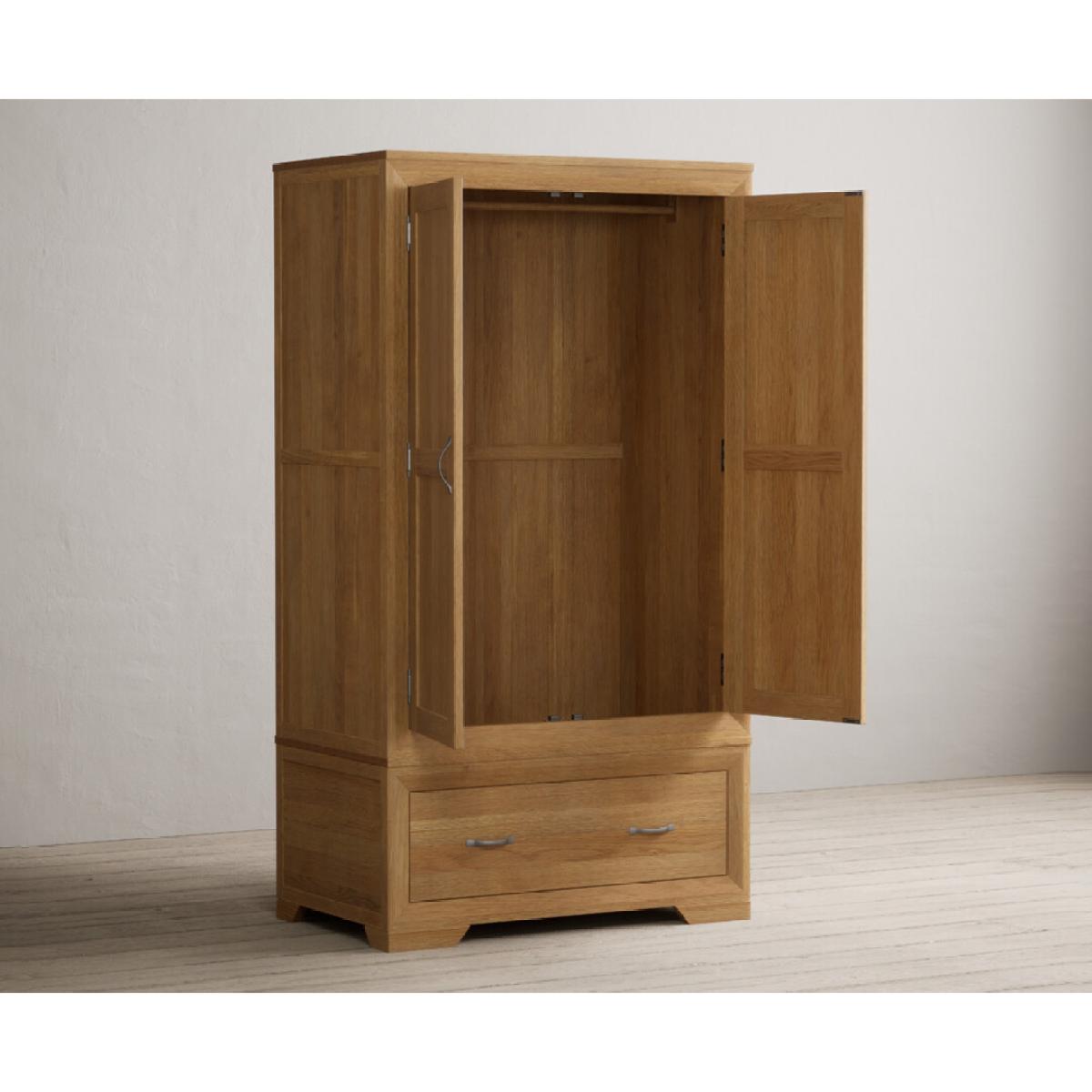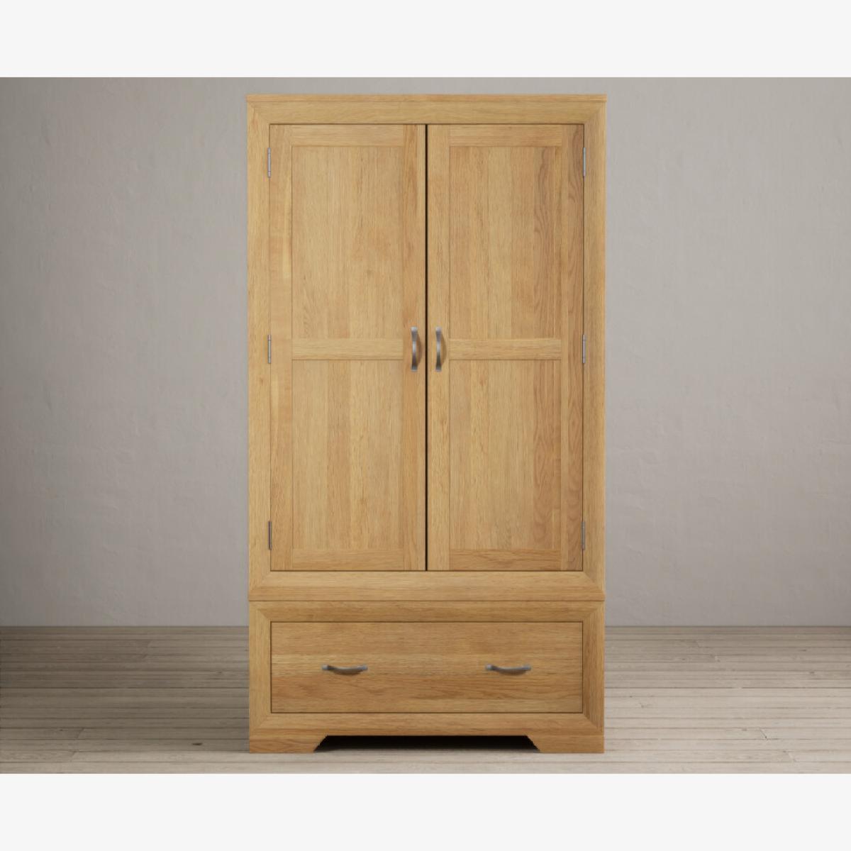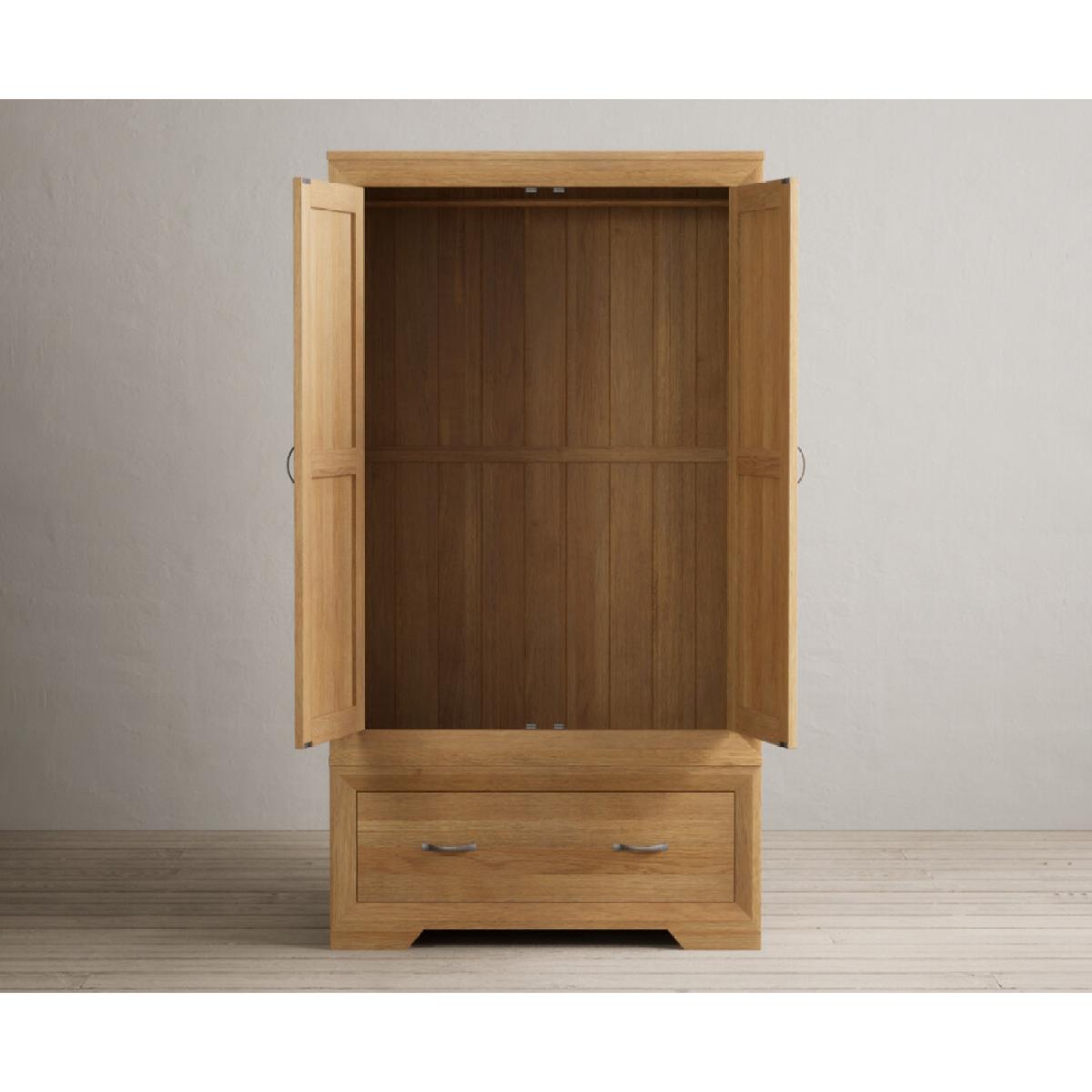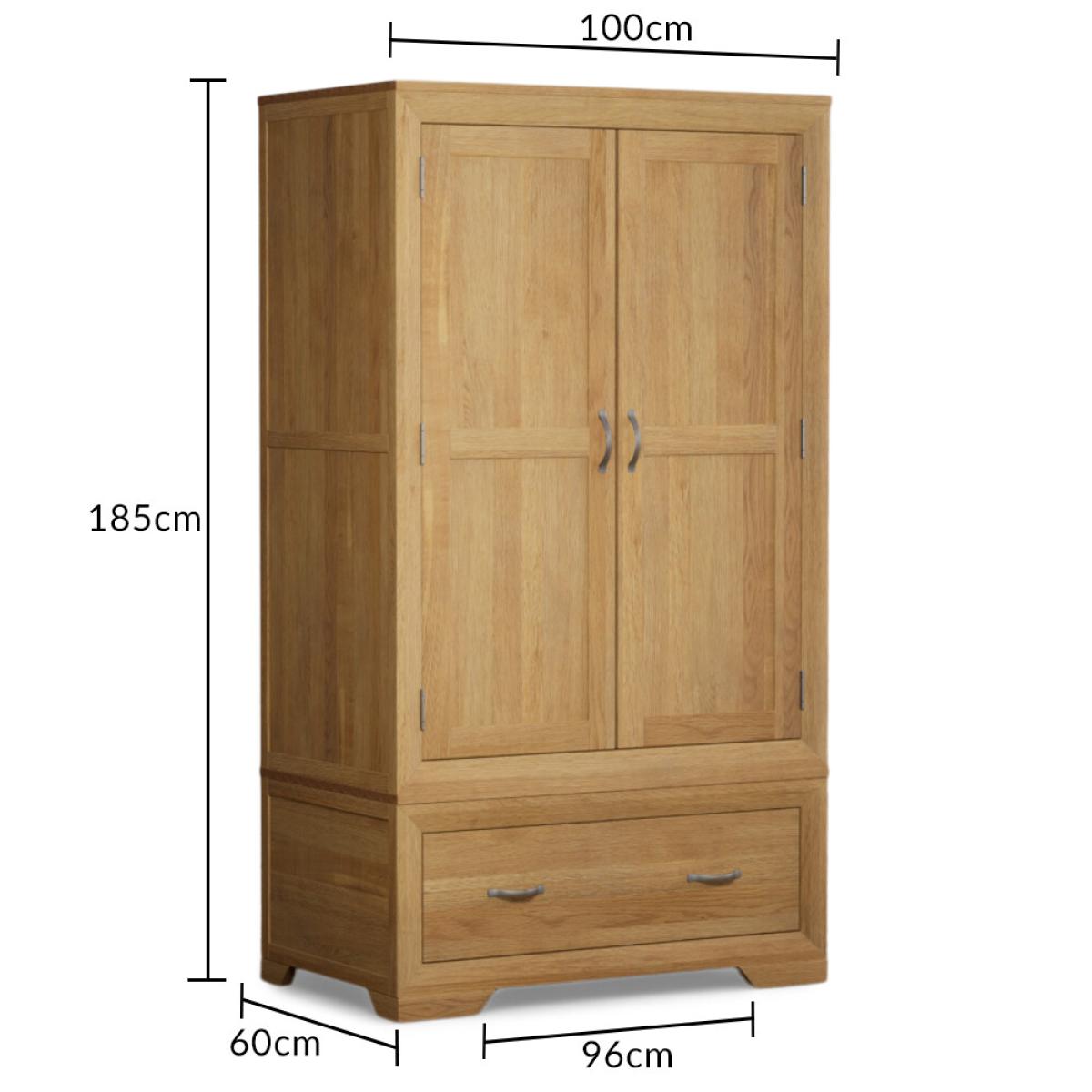 The Mitre Solid Oak Double Wardrobe is crafted from 100% solid oak with a natural finish, with plenty of hanging space and lower dovetail drawers.