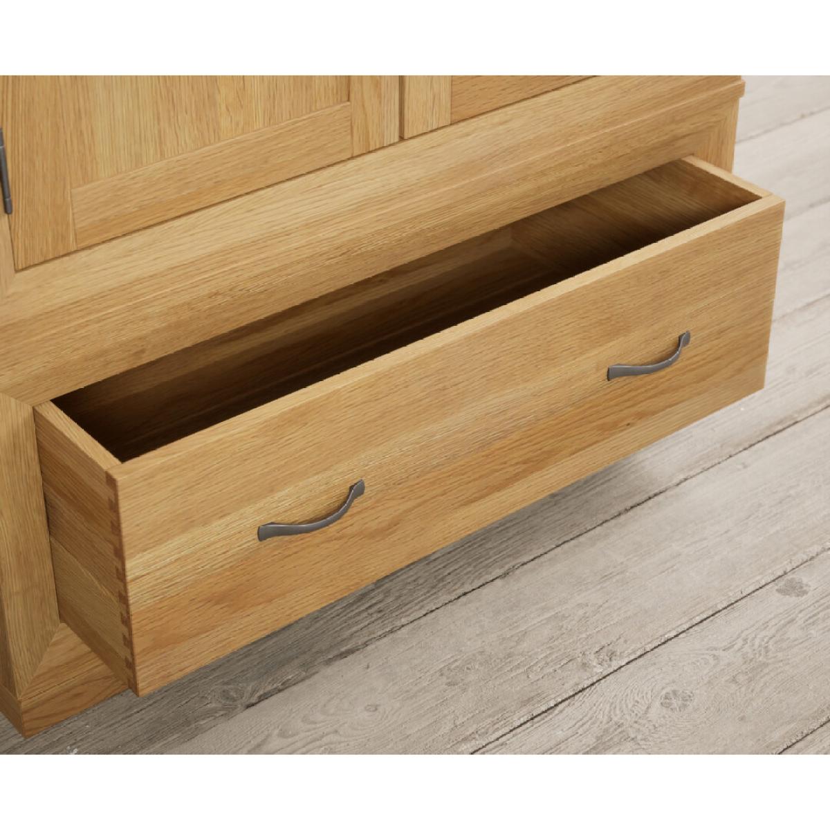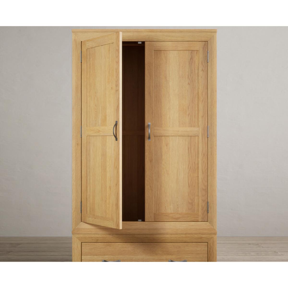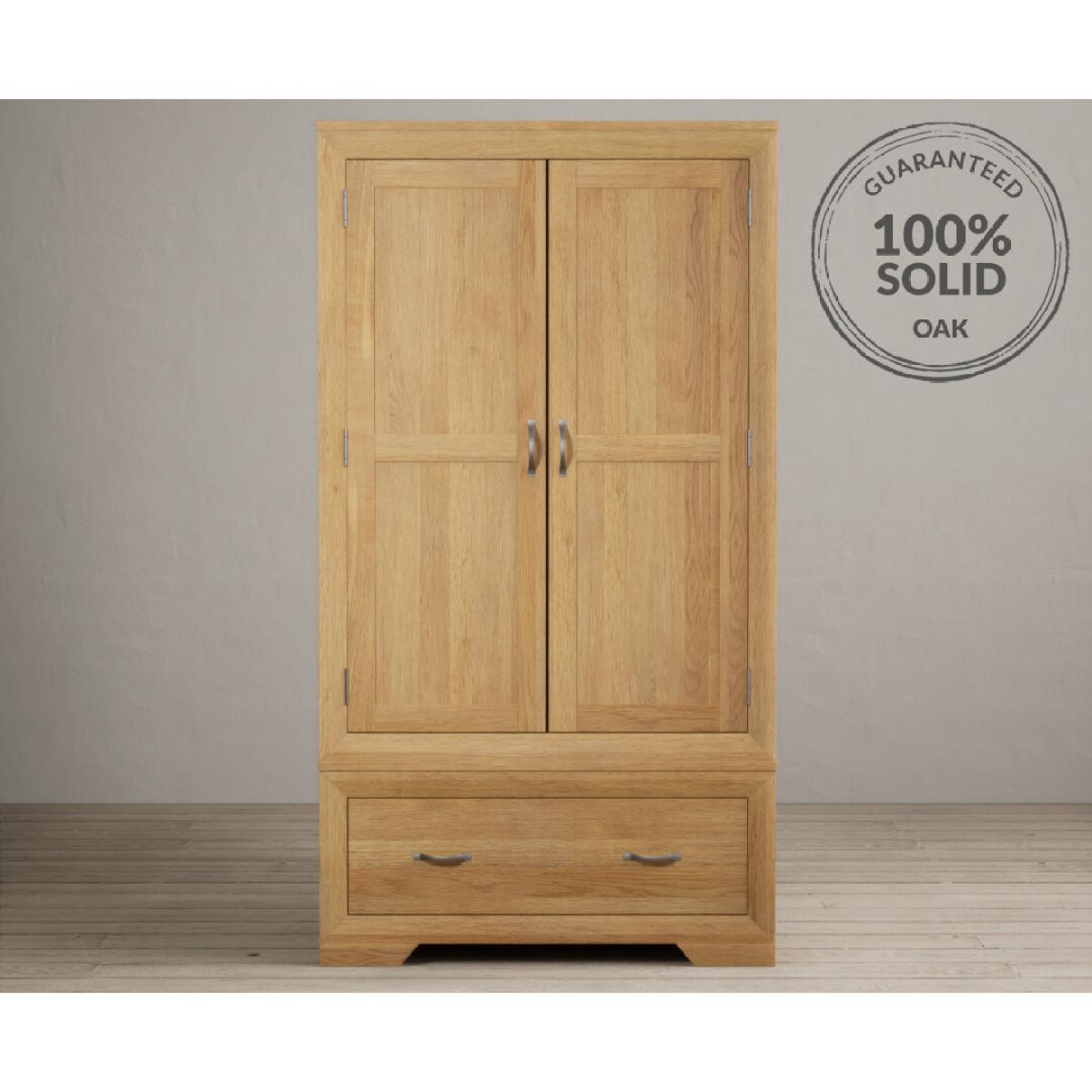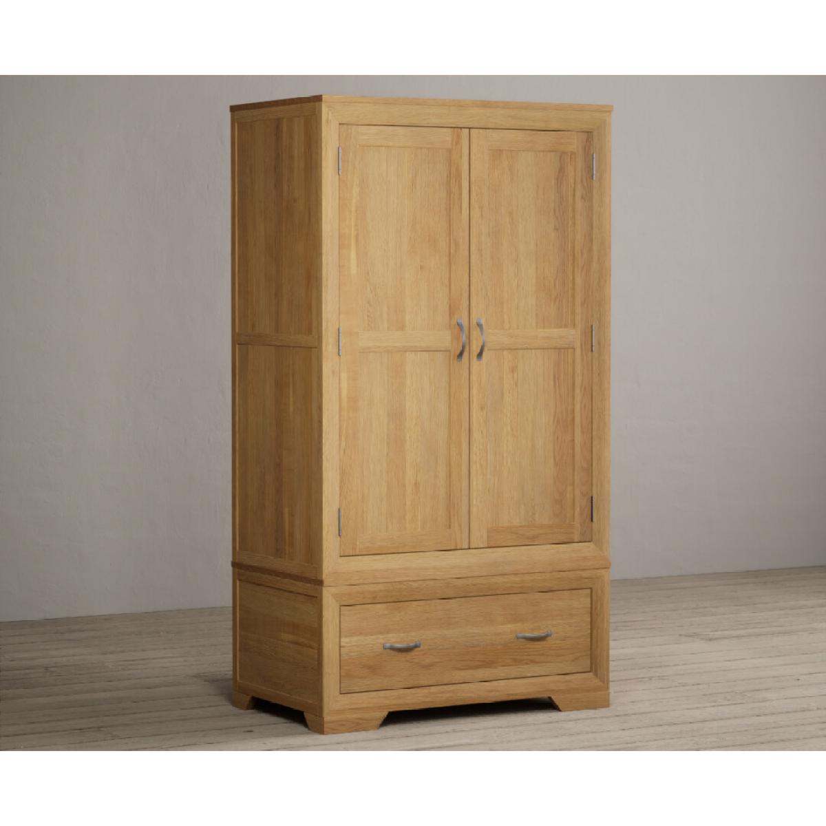The Mitre Solid Oak Double Wardrobe is crafted from 100% solid oak with a natural finish, with plenty of hanging space and lower dovetail drawers.