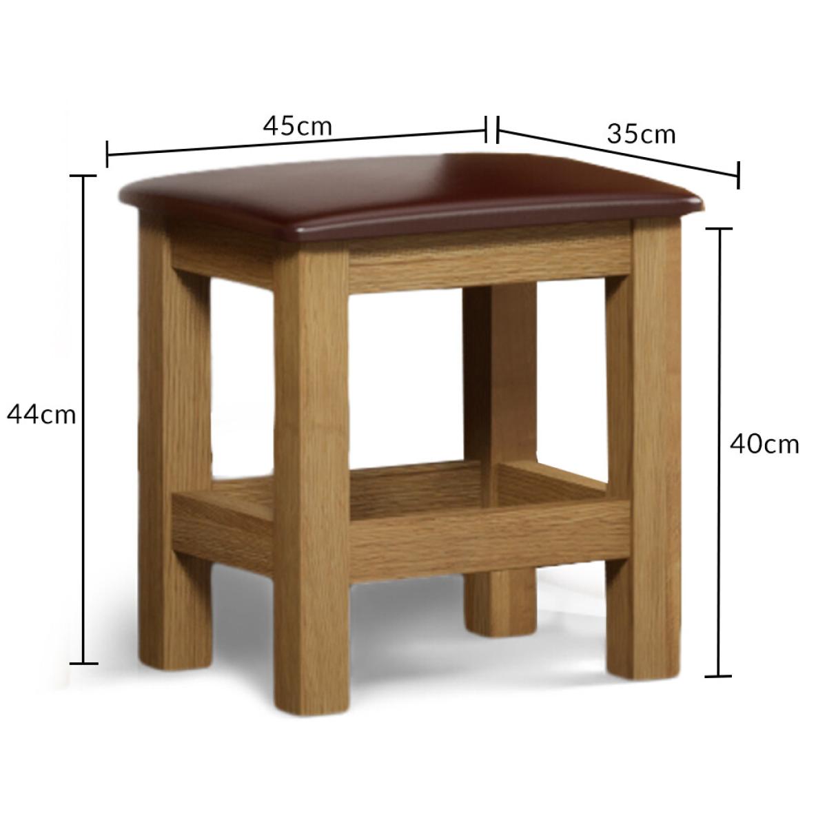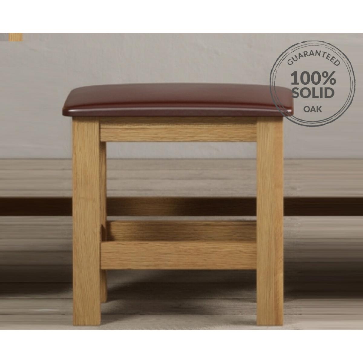 The Mitre Solid Oak and Leather Dressing Stool is crafted from solid oak, with a natural finish and padded leather seat.