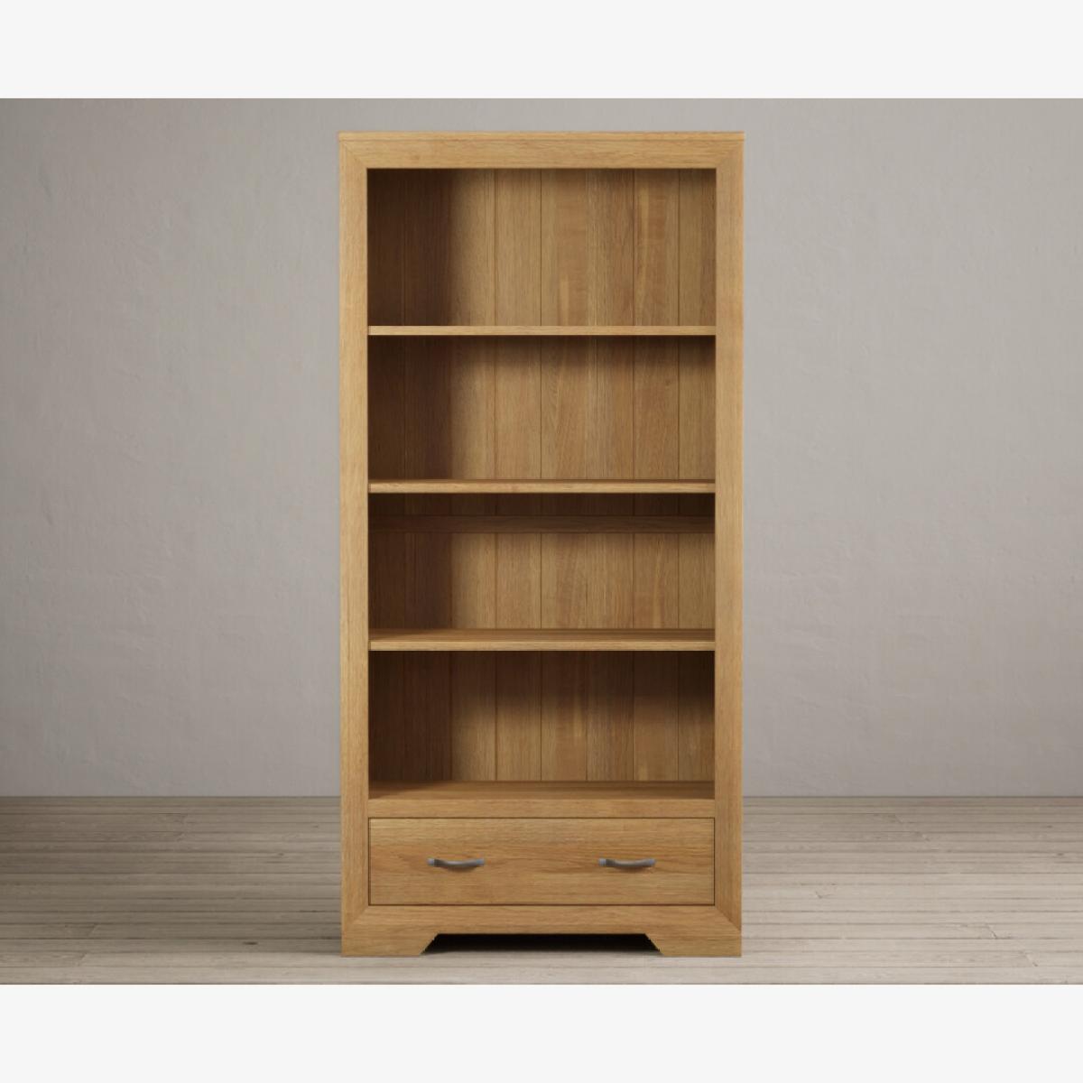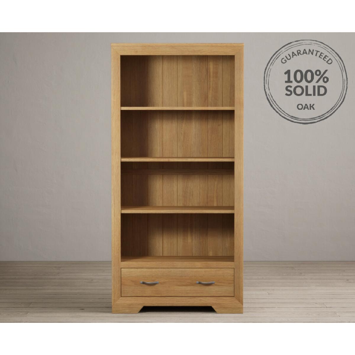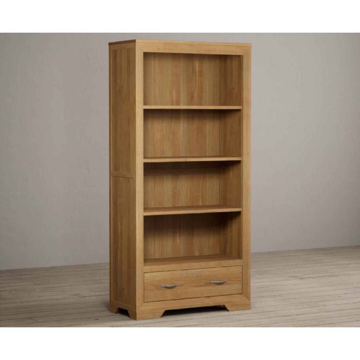 The Mitre Solid Oak Tall Bookcase is crafted from durable 100% solid oak and features three removable shelves and a dovetail drawer.