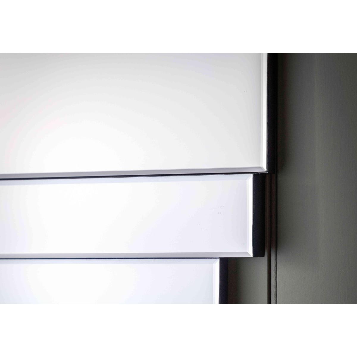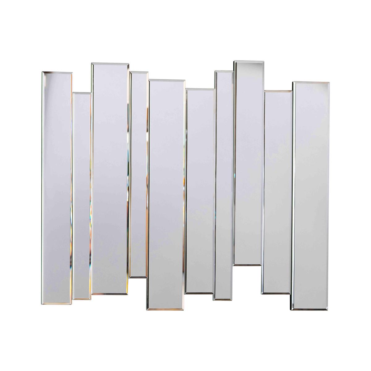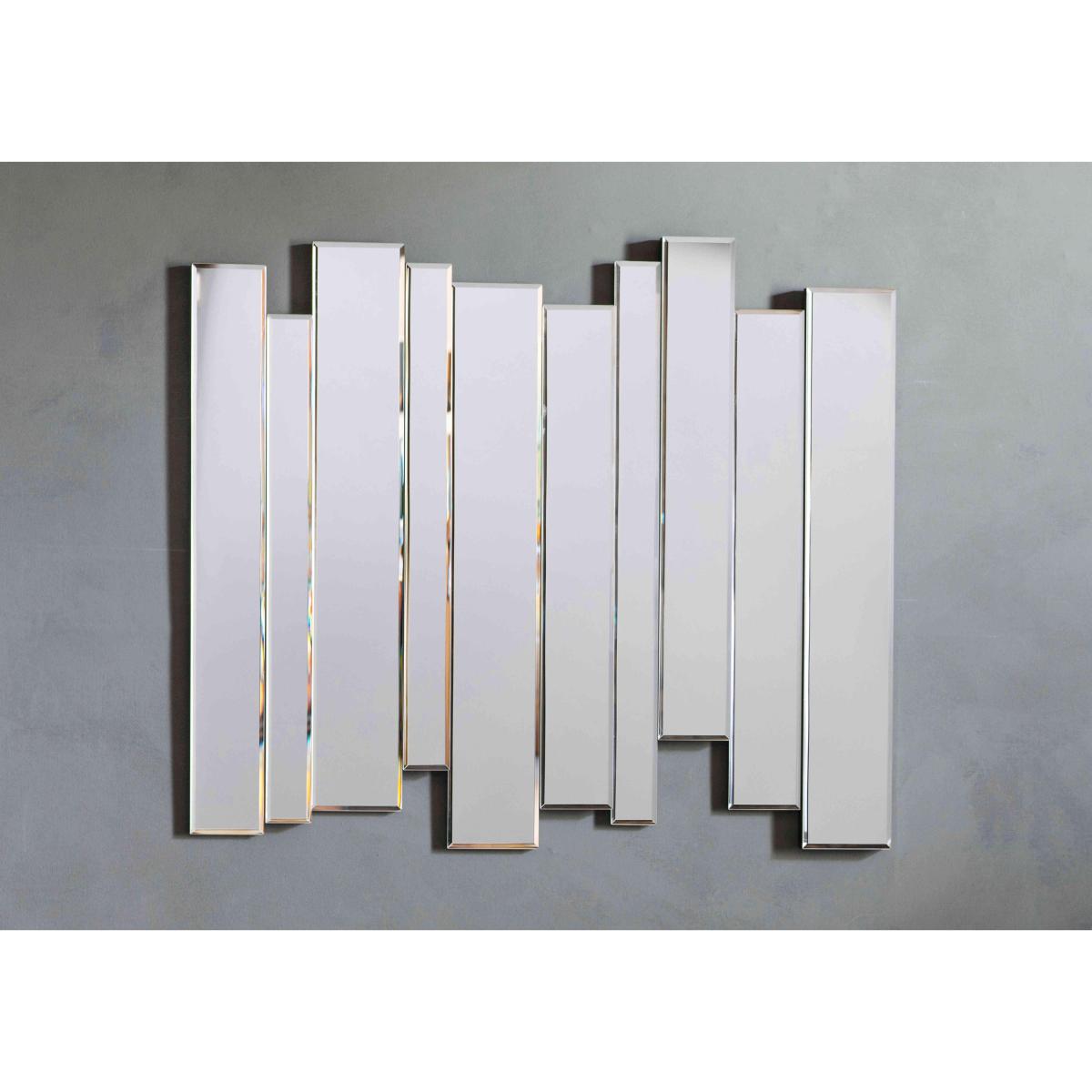This stunning arrangement of bevelled-edged mirrored rectangles redefines the mantlepiece mirror. Bold and creative, it’s as much a piece of wall art as it is a mirror. Why you'll love it This eye-catching mirror is a striking piece of wall art. Creative contemporary style. Composed of mirrored pieces in an asymmetric arrangement. Perfect for a living room feature wall. Exclusive to Furniture Village. This mirror is part of the Furniture Village home accessories collection. What you need to know Can be hung horizontally or vertically. For indoor use only. Dimensions Height: 80 cm (32 in). Depth: 3 cm (2 in). Width: 120 cm (48 in).