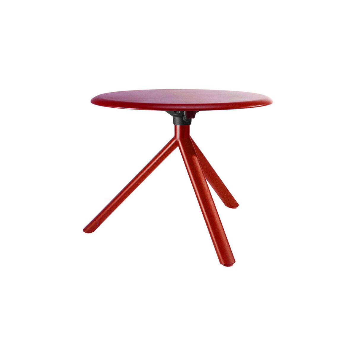 The Miura collection by Konstantin Grcic becomes larger with the range of tables (bar table, table and low table). Like the stool, the tables are stackable (except the low table). It stands on tripod legs and the top folds down, allowing for multiples to nest into one another. For home and also for bars and restaurants.