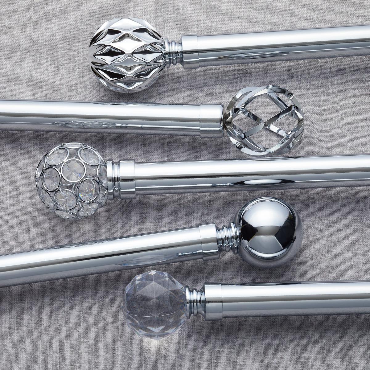 Part of the Mix and Match range this set of two decorative curtain pole finials are designed with a light reflecting deco ball design, complete with a chrome finish.
