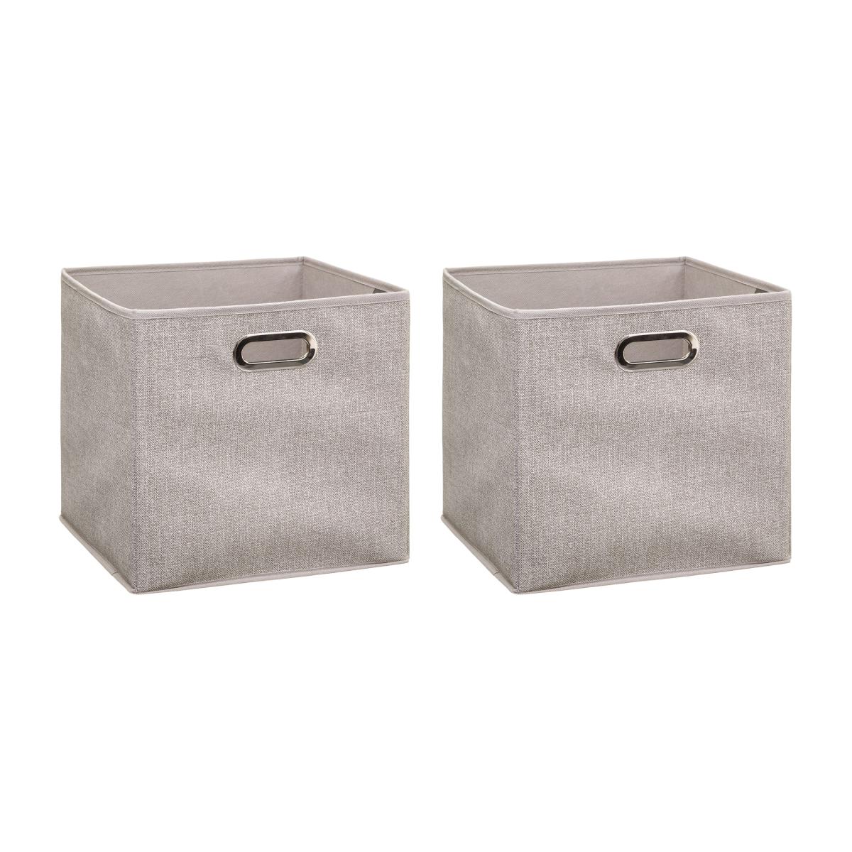 * Easily assembled* Features 2 handles for ease of carrying* Compatible with Mix and Modul furniture system* Features a linen effect finish* Available in a choice of finishes Declutter and organise in style with these minimalist linen storage boxes. Easily assembled into a 31 x 31 x 31cm cube, they feature two handles for convenient carrying. Simply wipe with a damp cloth to clean, and they are compatible with the Mix and Modul furniture system.
