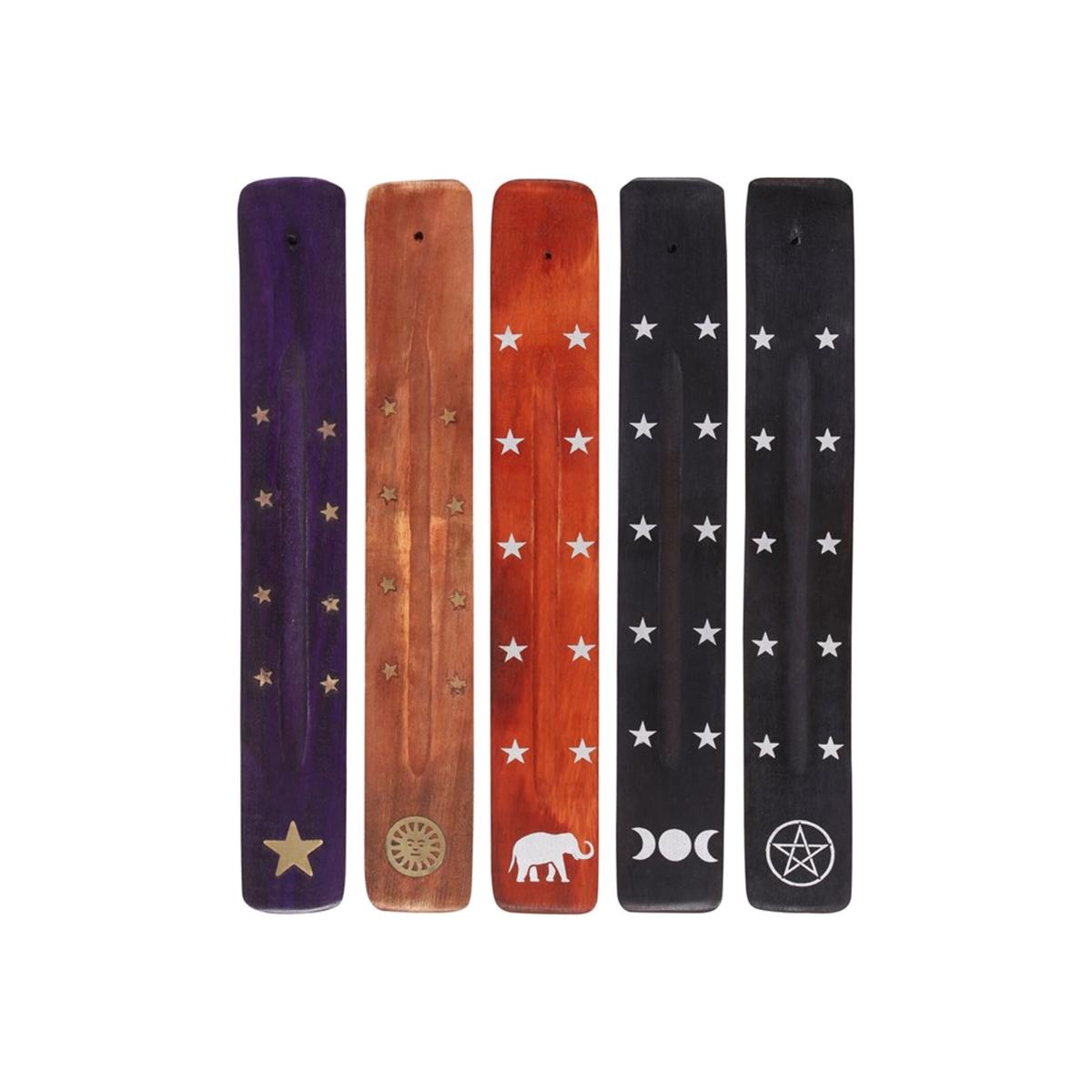 A set of 10 incense ash catchers in 5 different designs star, elephant, sun, pentagram and triple moon. Perfect for favours for a special event or for decorating a large home or venue.