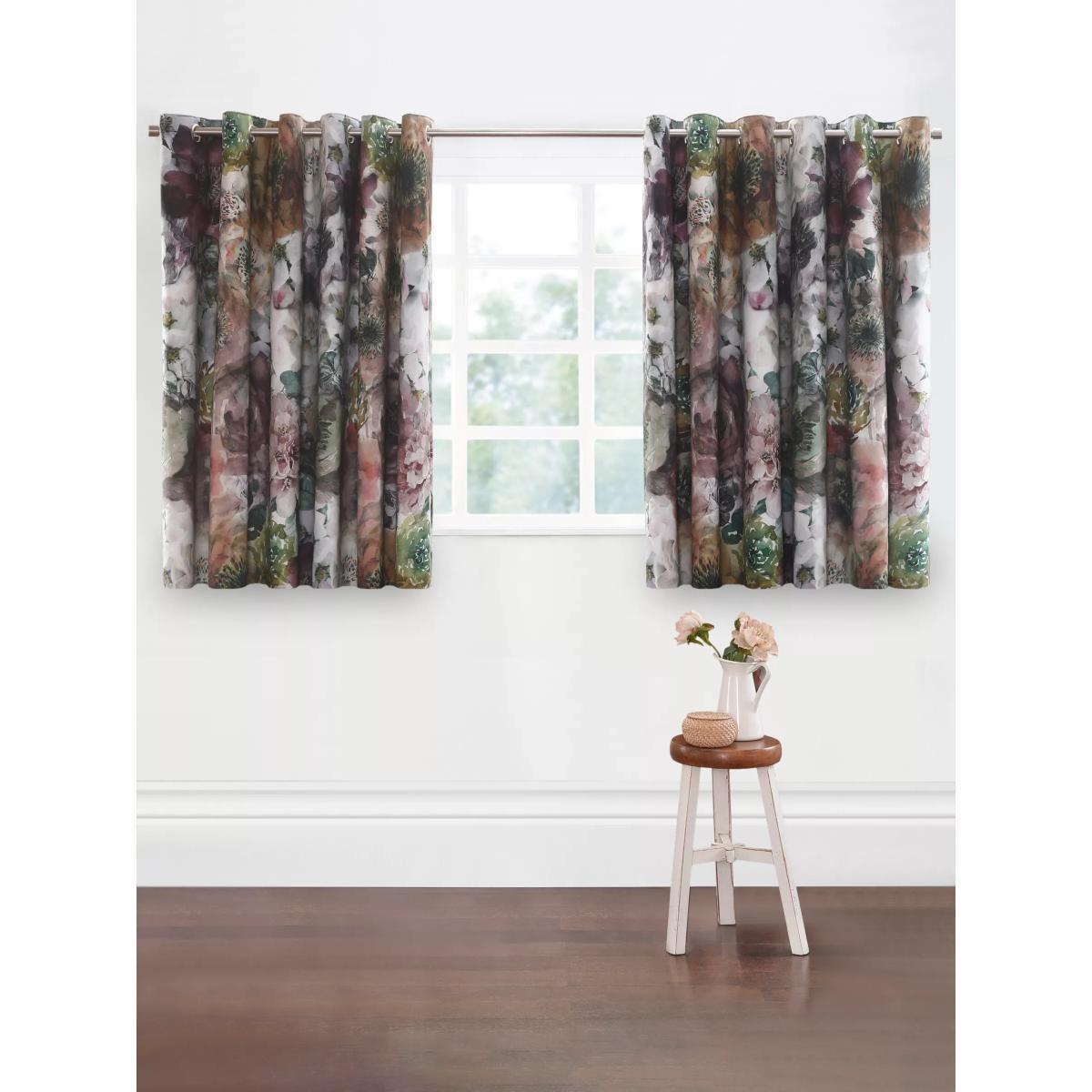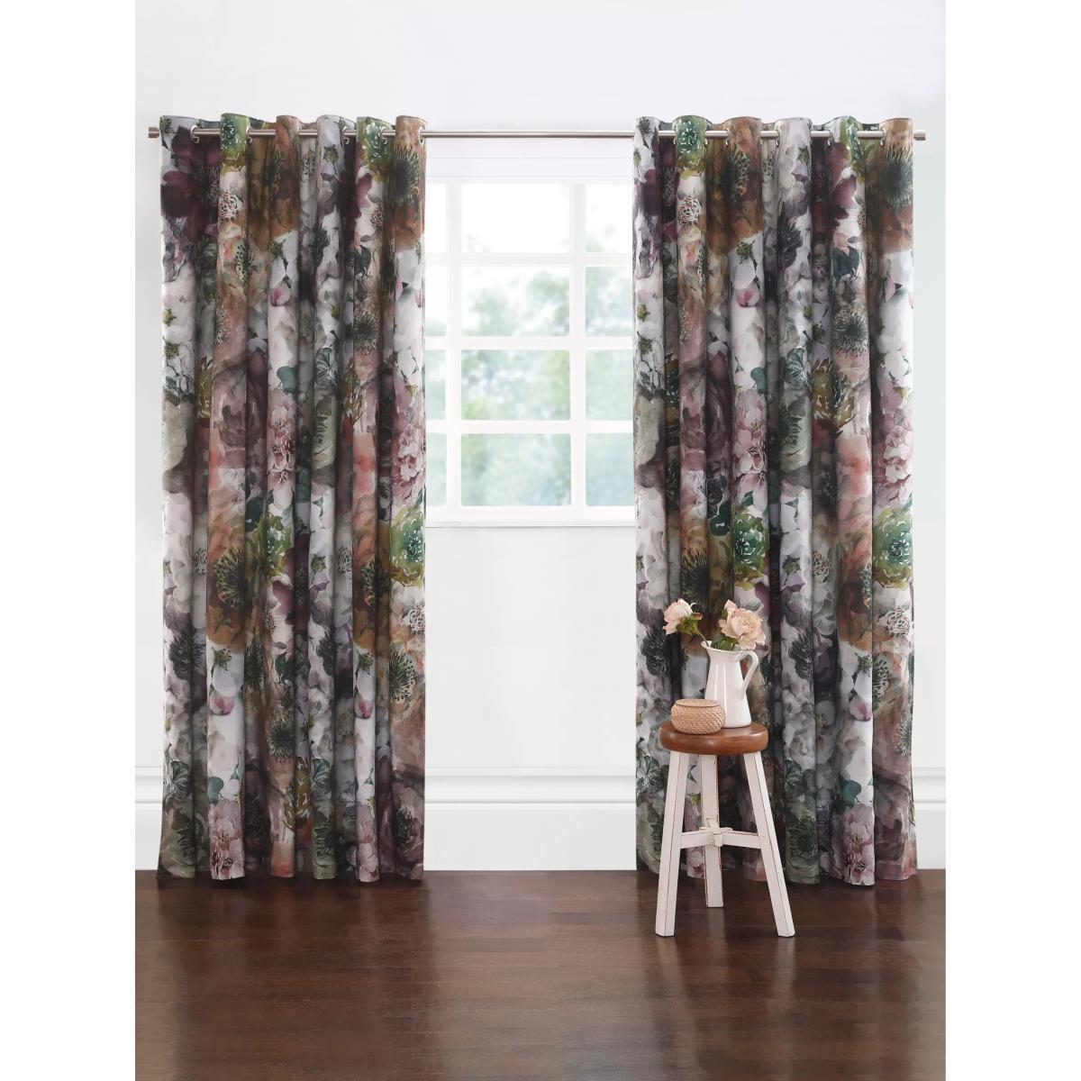 Featuring a beautiful print of large-scale florals these MM Linen curtains have an eyelet heading which gives them a more contemporary look with large, even folds. The blackout lining eliminates light and lends a full look to the curtain, improving the drape and enhancing the vibrancy of the pattern. The width stated indicates the size of one curtain panel when laid completely flat. This pack contains two panels and the track/pole length we've recommended allows for the two panels to be gathered when the curtains are drawn. For a fuller look, increase the curtain width. One pair of 167cm width curtains will fit a curtain track/pole size 133-167cm One pair of 228cm width curtains will fit a curtain track/pole size 182-228cm Do you need a curtain pole and accessories?