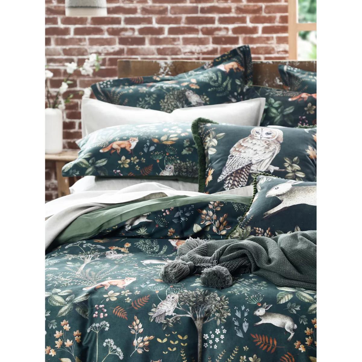 A small scale classic design depicting creatures at play in a country garden and arboretum. Printed digitally on smooth 225 thread count pure cotton sateen, the all-natural fabric helps keep you cool and comfortable throughout the night. Each set contains 2x standard pillowcases. Have you thought about sheeting? Shop. Bedding sizes To fit duvet/pillow size (cm) Standard pillowcase, L75 x W50cm Double duvet cover, L200 x W200cm King duvet cover, L220 x W225cm Super king duvet cover, L220 x W260cm