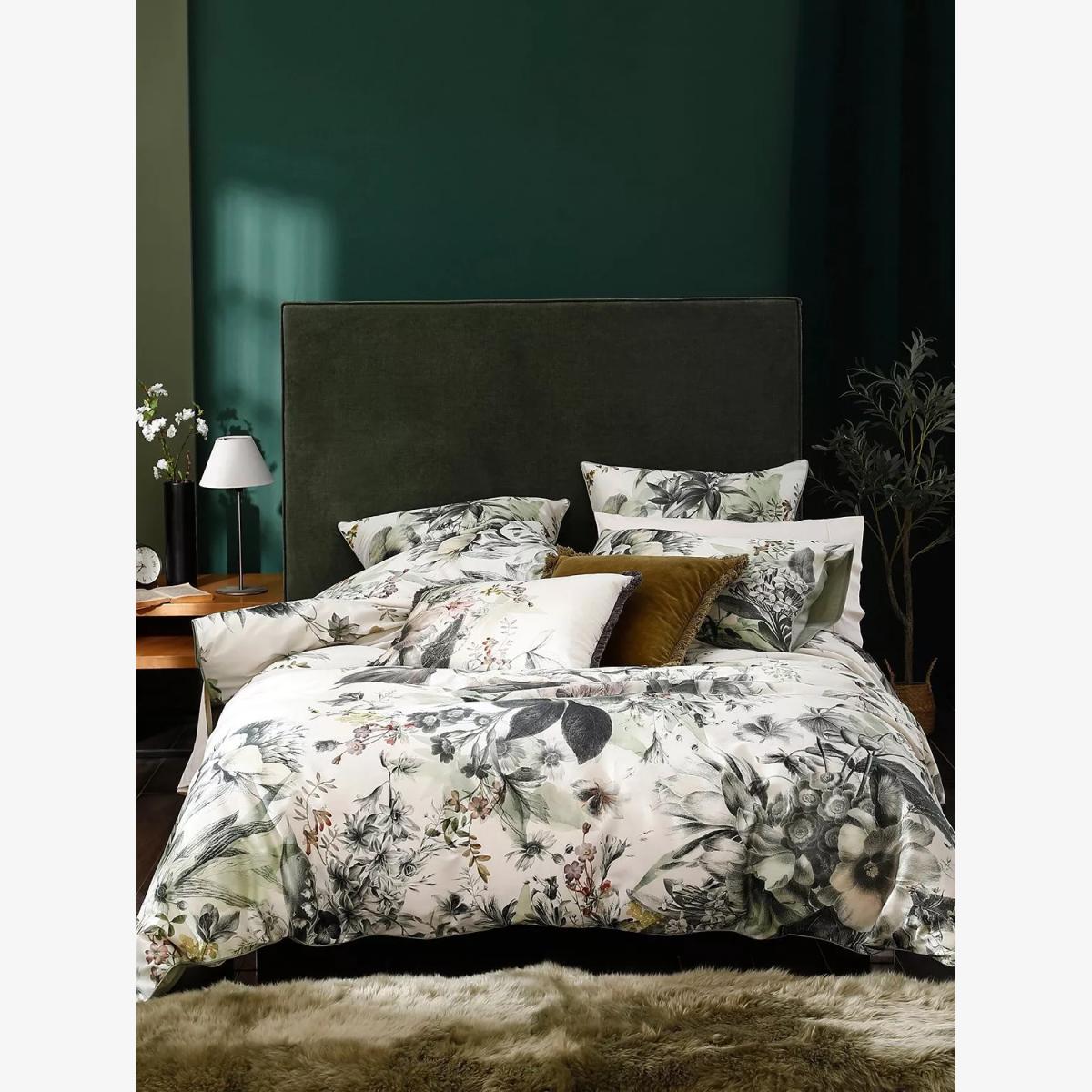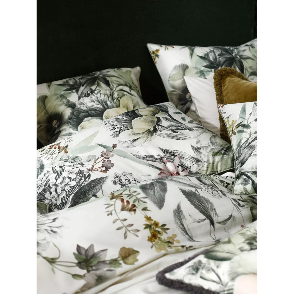 The combination of the cool smooth fabric and the calm, restful design of Etoile will add a dash of elegance to your bedroom. The original handpainted design includes hints of the palest pink and lilac, has piped edges and a sage green reverse side. Etoile is made from smooth, 225 thread count cotton to help keep you cool and comfortable throughout the night. Each set contains 2x standard pillowcases. Have you thought about sheeting? Shop here. Bedding sizes To fit duvet/pillow size (cm) Standard pillowcase, L75 x W50cm Double duvet cover, L200 x W200cm King duvet cover, L220 x W225cm Super king duvet cover, L220 x W260cm