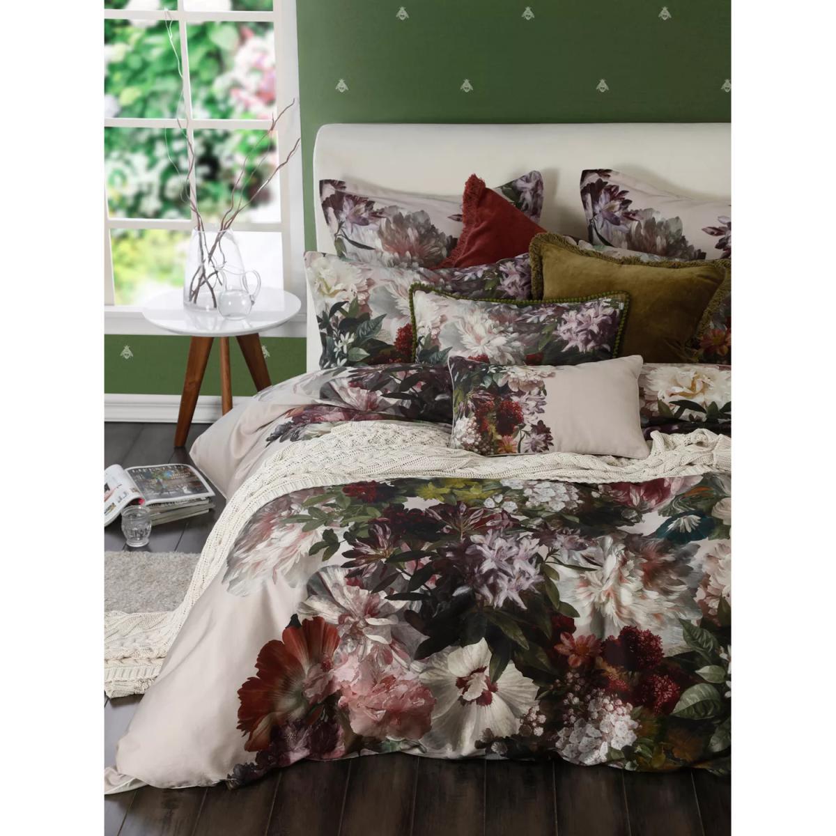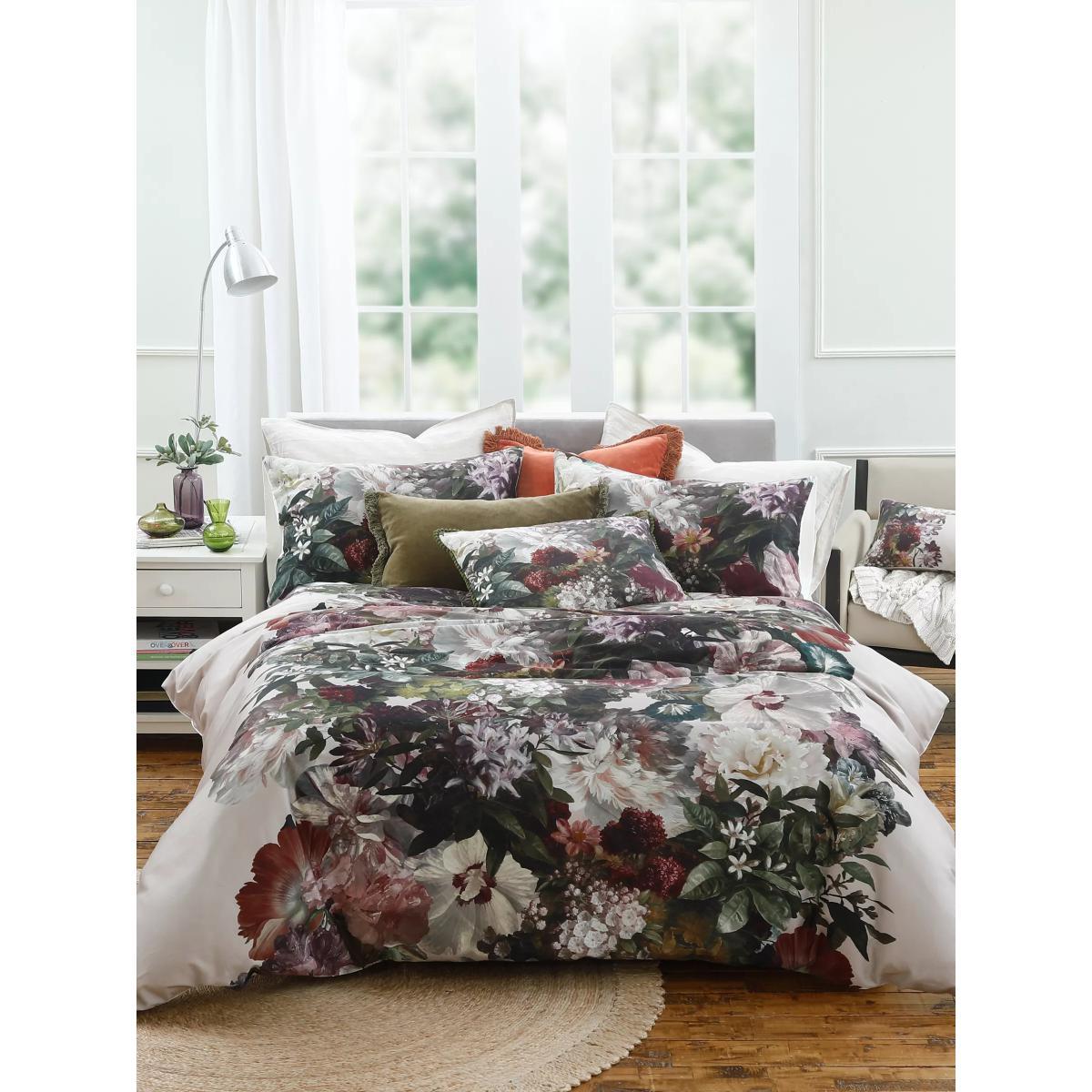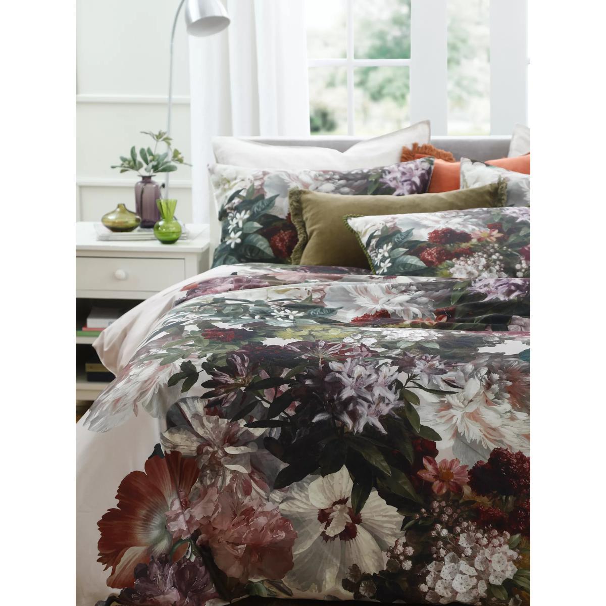 A large scale floral in rich shades. The white braid trim adds a touch of luxury and matches the reverse of the duvet cover. Printed digitally on smooth 225 thread count pure cotton sateen, the all-natural fabric helps keep you cool and comfortable throughout the night. Each set contains 2x standard pillowcases. Have you thought about sheeting? Shop. Bedding sizes To fit duvet/pillow size (cm) Standard pillowcase, L75 x W50cm Double duvet cover, L200 x W200cm King duvet cover, L220 x W225cm Super king duvet cover, L220 x W260cm