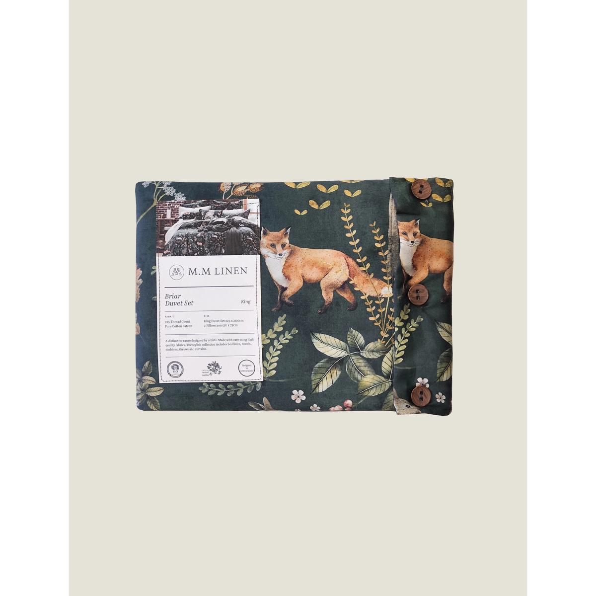 This Briar bedding set by MM Linen will bring a touch of the great outdoors to your home. It's crafted from pure cotton sateen with a premium 220 thread count so you can dream in comfort. The woodland design is digitally printed onto the fabric, lending it a luxuriously smooth feel. It features playful owls, foxes and rabbits hiding among the trees and leaves.