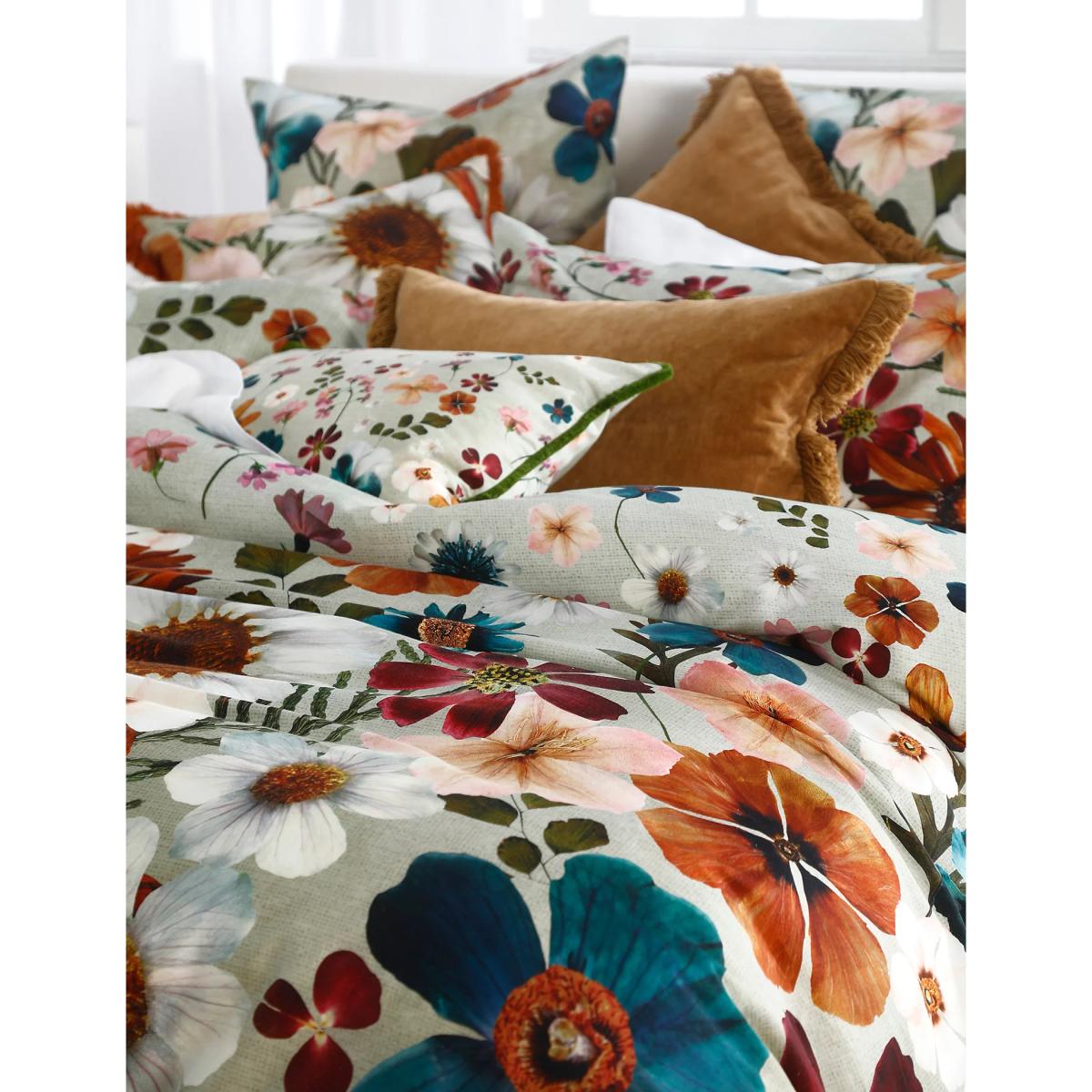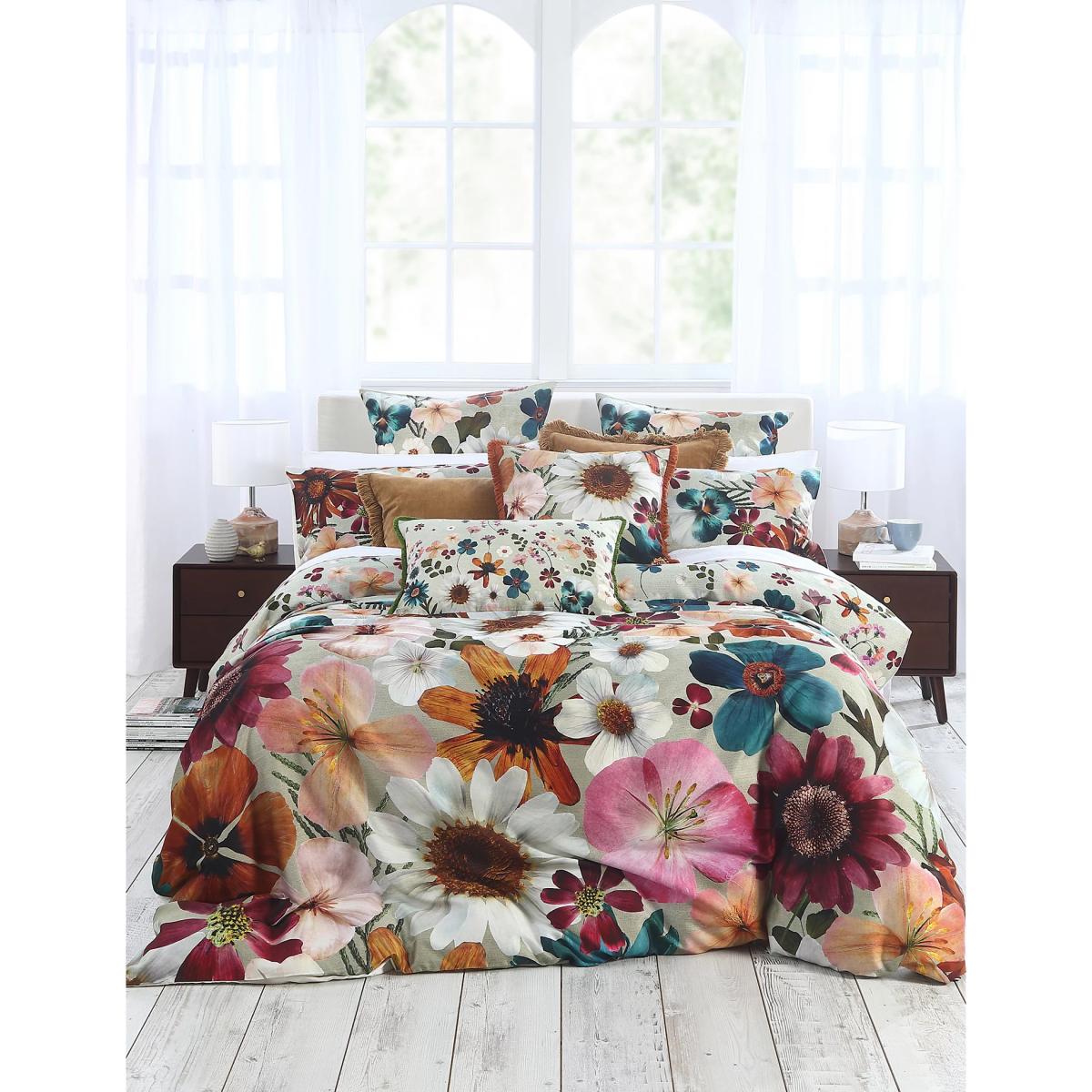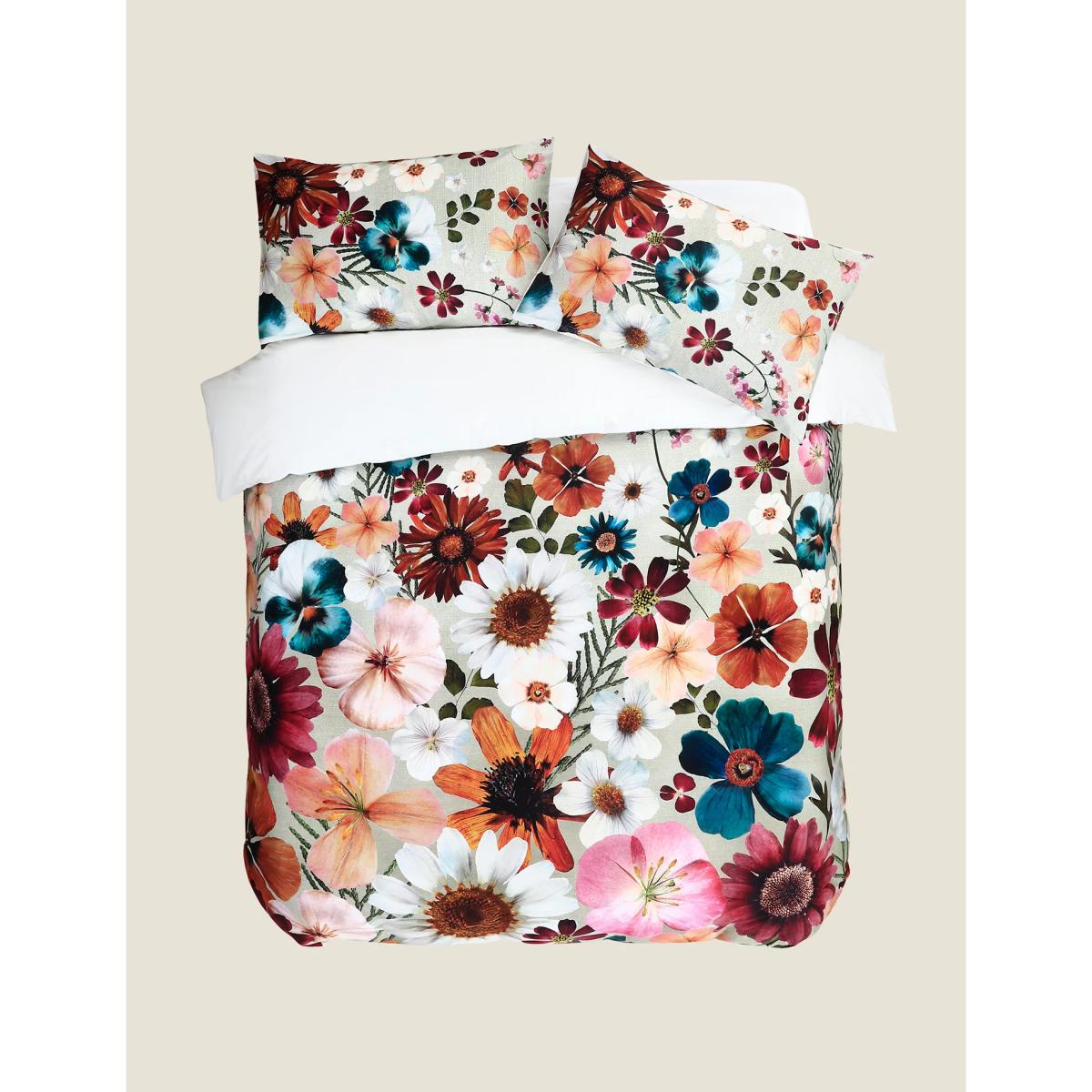 Vibrant, large-scale blooms lend a fresh look to this flowerbed bedding set by MM Linen. It's crafted from crisp pure cotton with a premium 220 thread count and a soft sateen finish. The design is inspired by mid-century floral art and is digitally printed to the fabric for a luxuriously smooth feel to the skin.