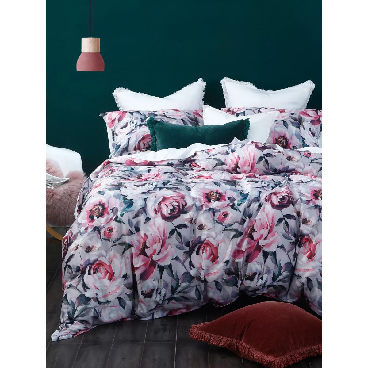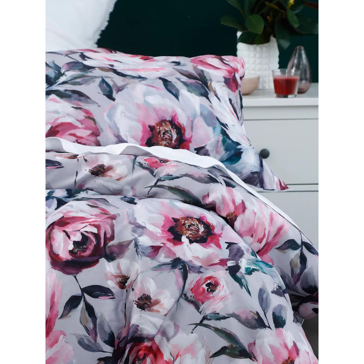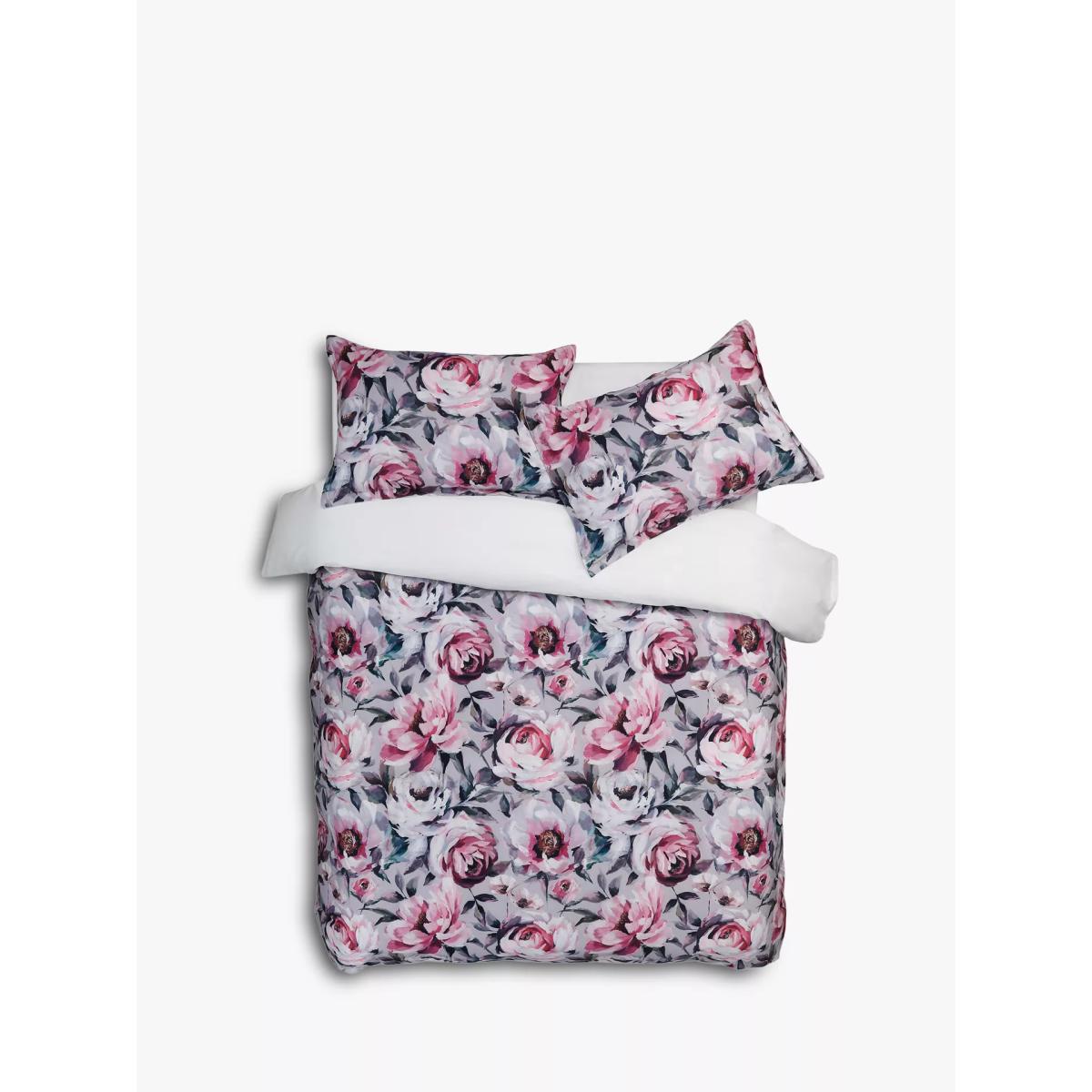 Stella is a modern classic repeat design of pretty pink flowers with a soft, grey background and white reverse. Printed on smooth 220 thread count pure cotton sateen, to enhance the crisp detail and freshness of the design, the all-natural fabric helps keep you cool and comfortable throughout the night. Each set contains 2x standard pillowcases. Have you thought about sheeting? Shop. Bedding sizes To fit duvet/pillow size (cm) Standard pillowcase, L75 x W50cm Double duvet cover, L200 x W200cm King duvet cover, L220 x W225cm Super king duvet cover, L220 x W260cm